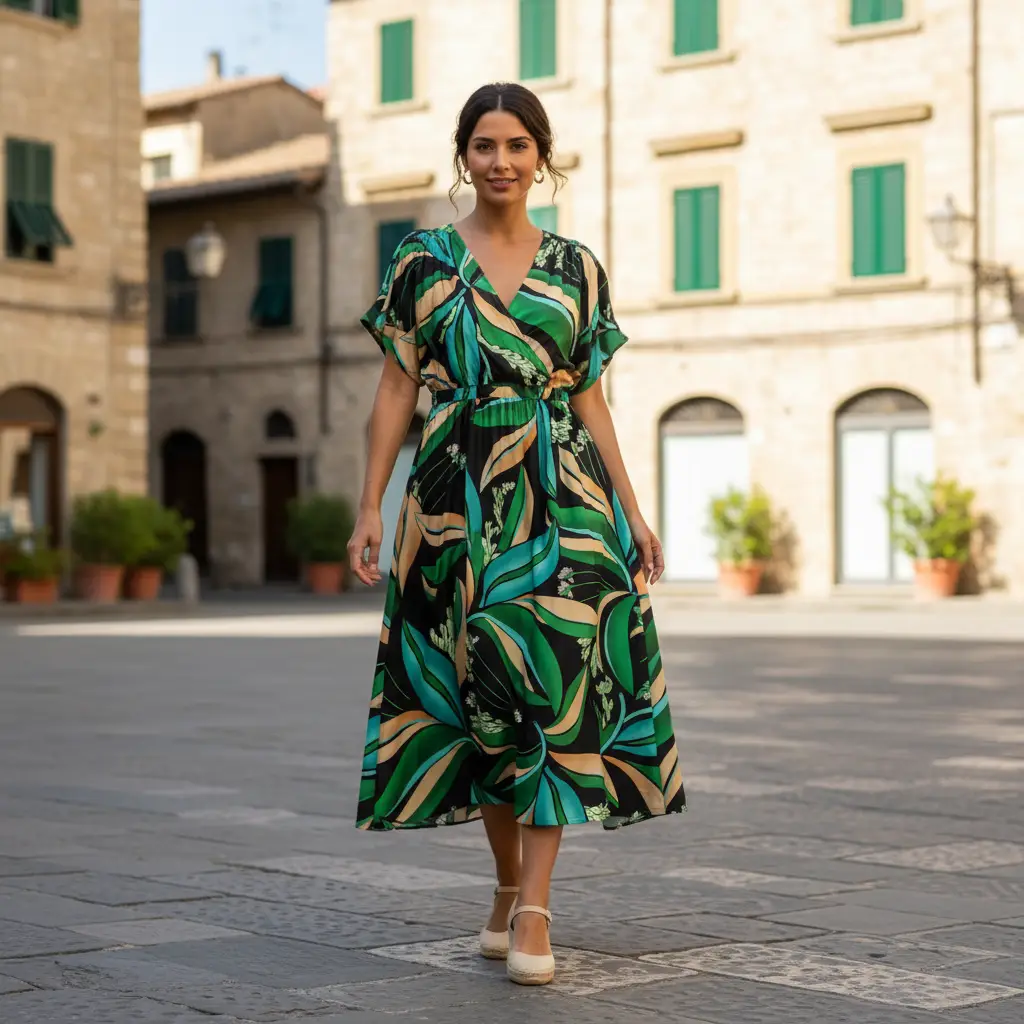 Tessuto Crepe a fantasia dalla mano rugosa, leggera e morbida, leggermente elasticizzato. Ideale per realizzare capi freschi e comodi come: abiti, camicie gonne e bluse.