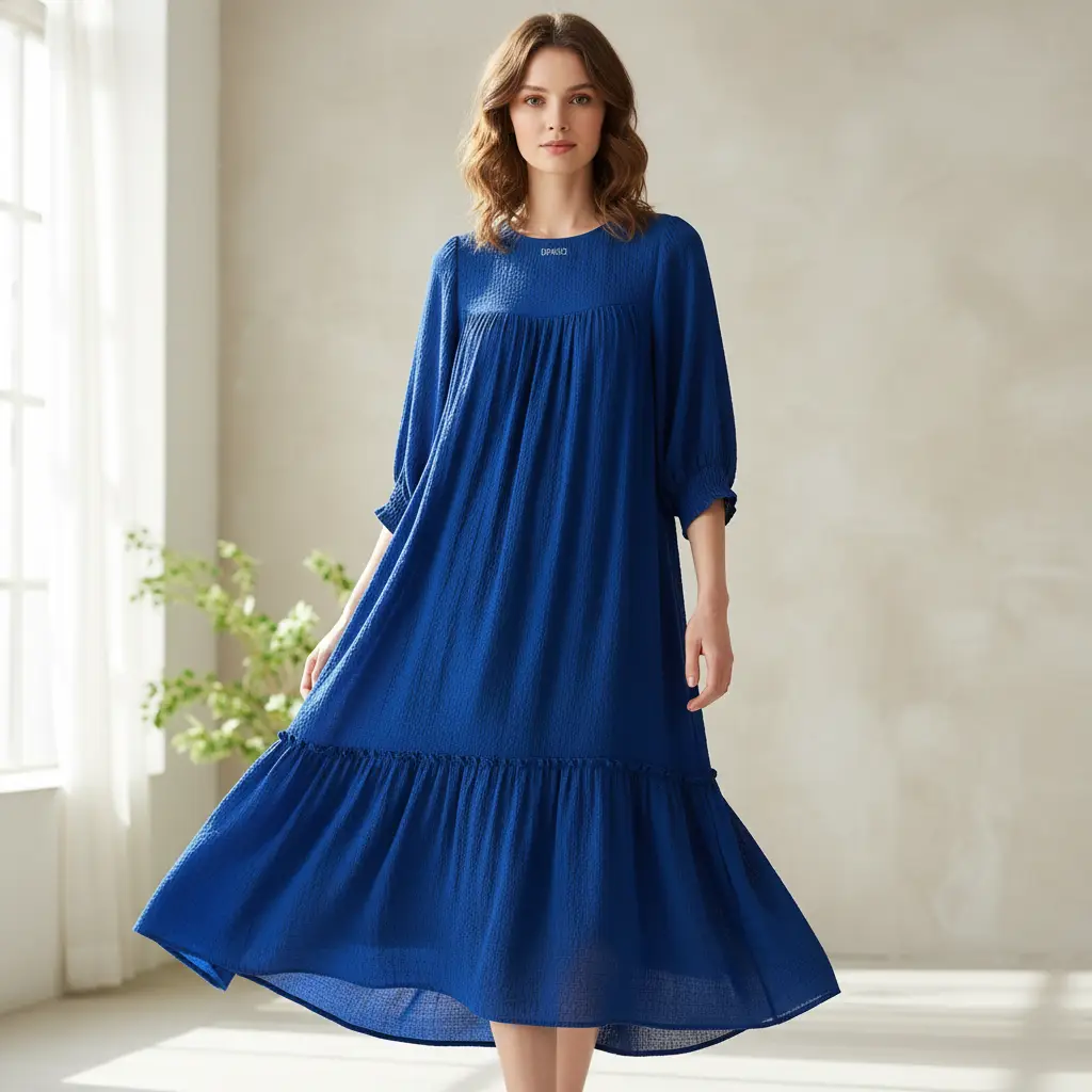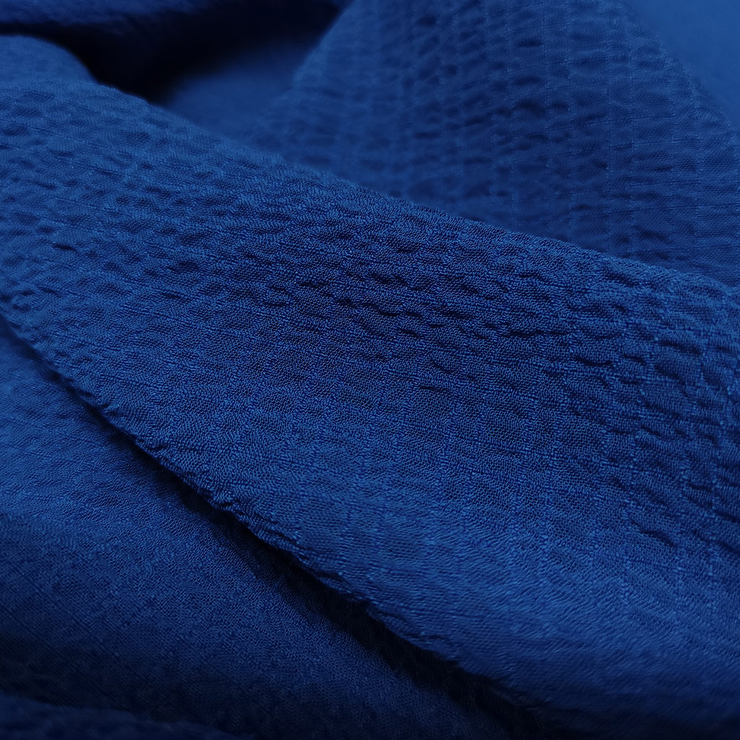 Tessuto Crepe goffrato tinta unita dalla mano rugosa, leggera e morbida, leggermente elasticizzato. Ideale per realizzare capi freschi e comodi come: abiti, camicie gonne e bluse.