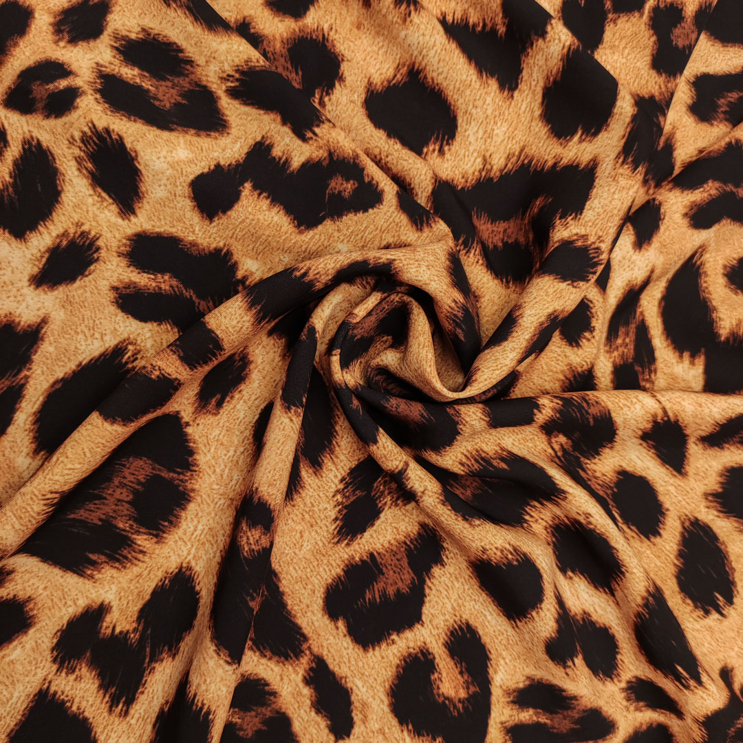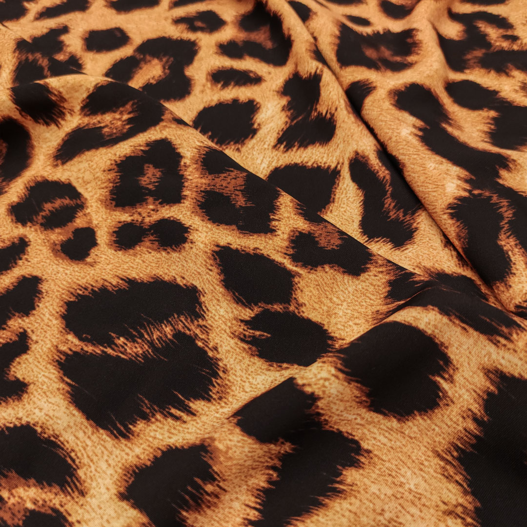 Tessuto Crepe morbido Elegance a fantasia motivo animalier marrone – marroncino
