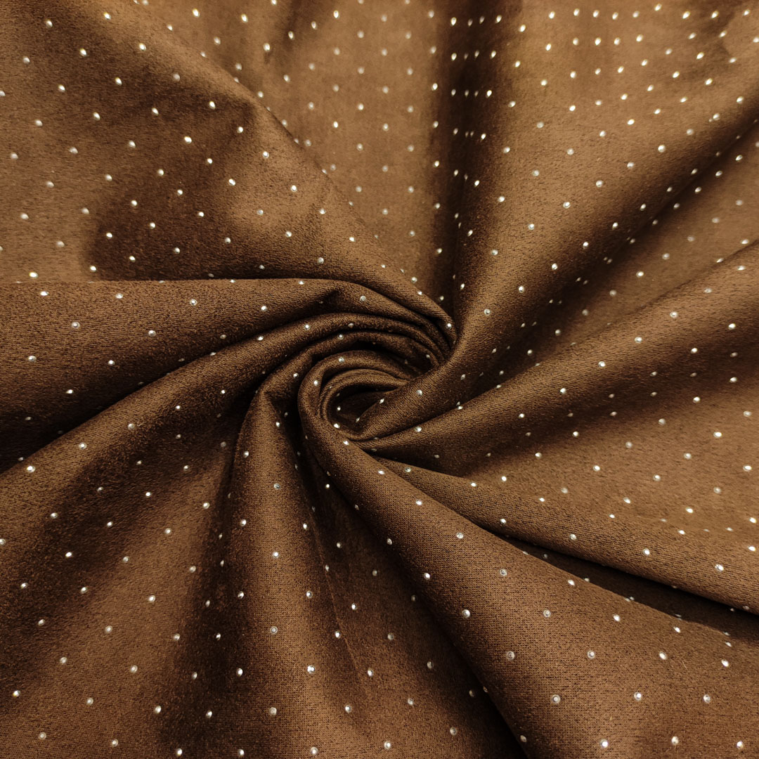 Tessuto Simil Dainetto con punti luce tinta unita cioccolato