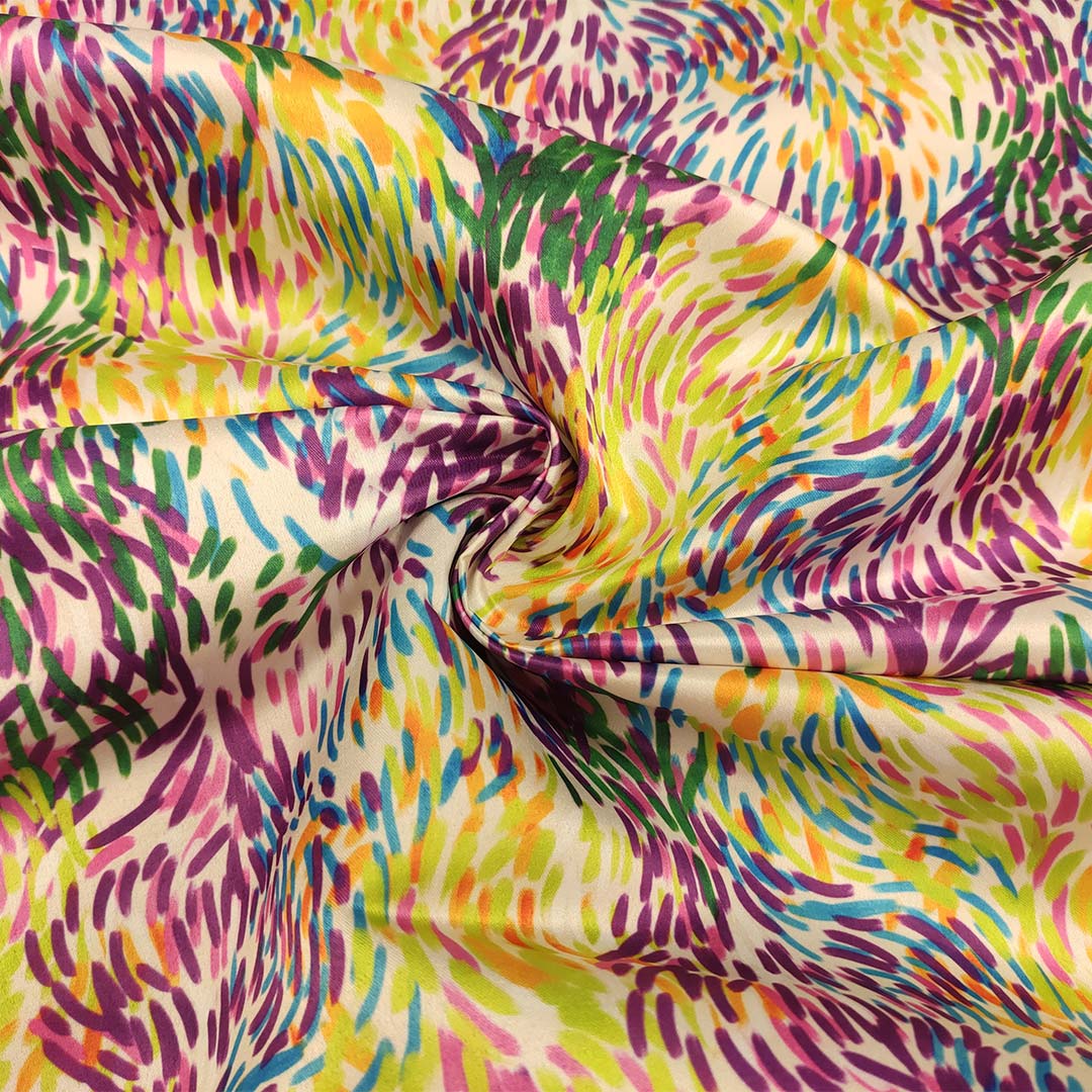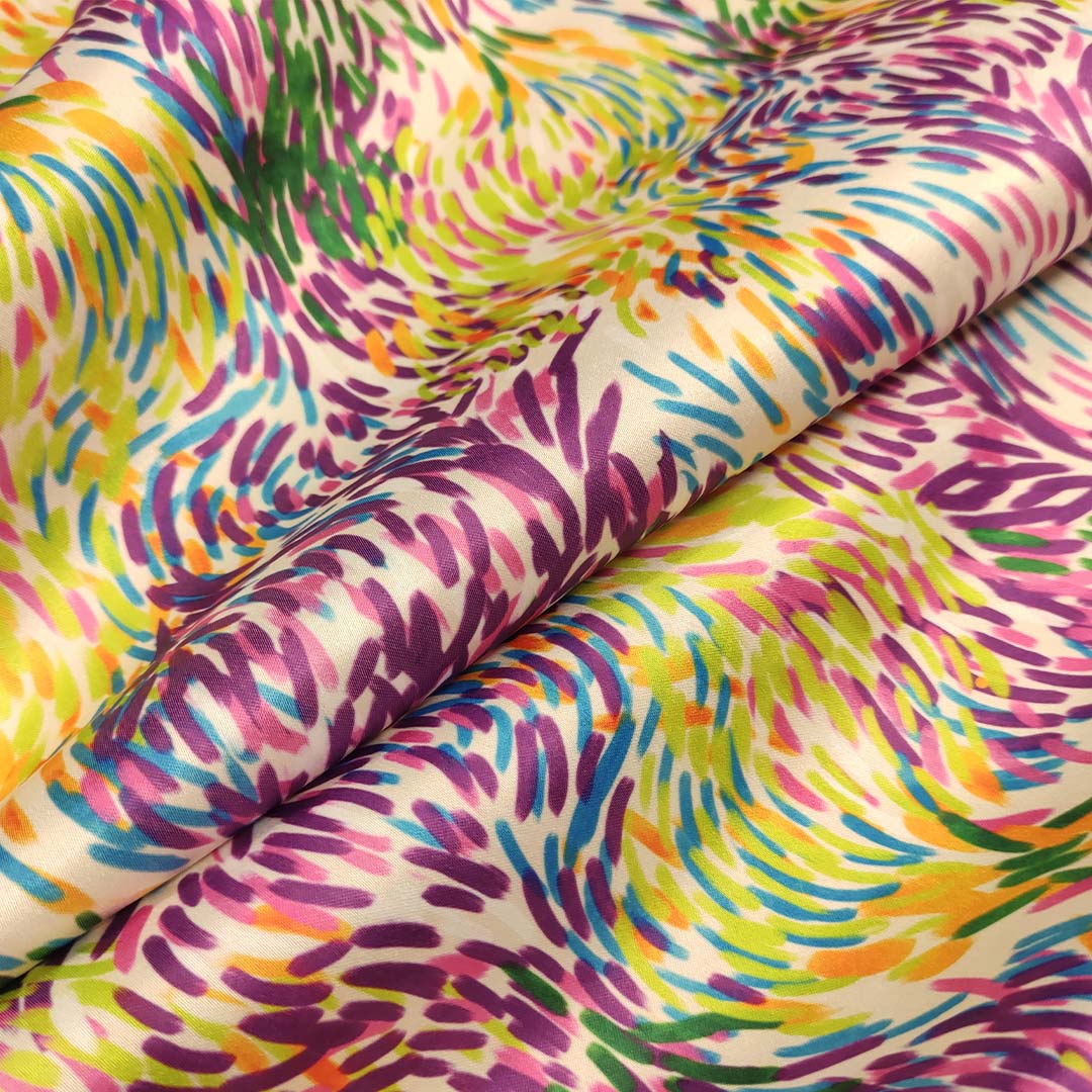 Tessuto Duchesse a fantasia motivo astratto arancio – turchese – verde – arancione