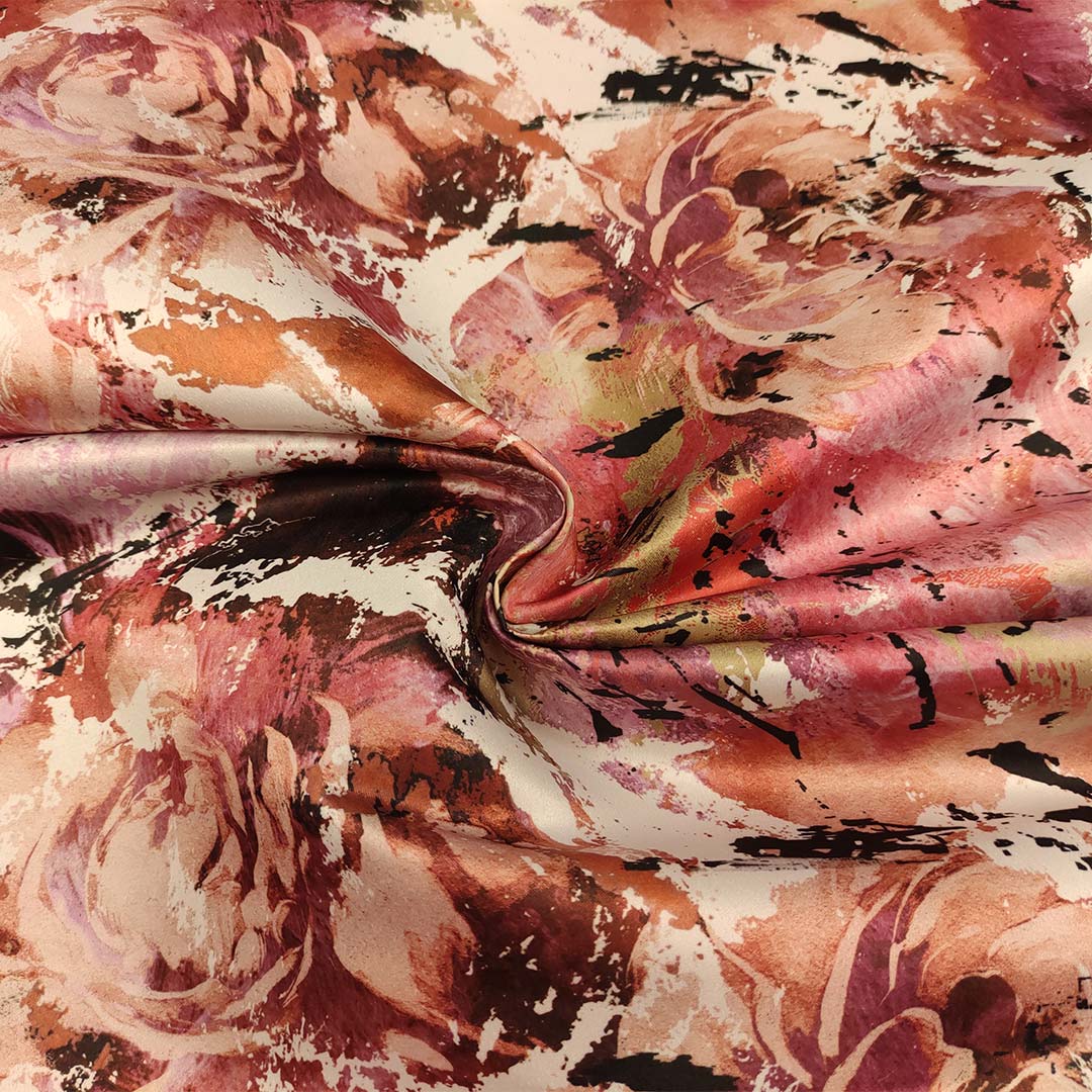 Tessuto Duchesse a fantasia motivo astratto azalea – verdino – bianco
