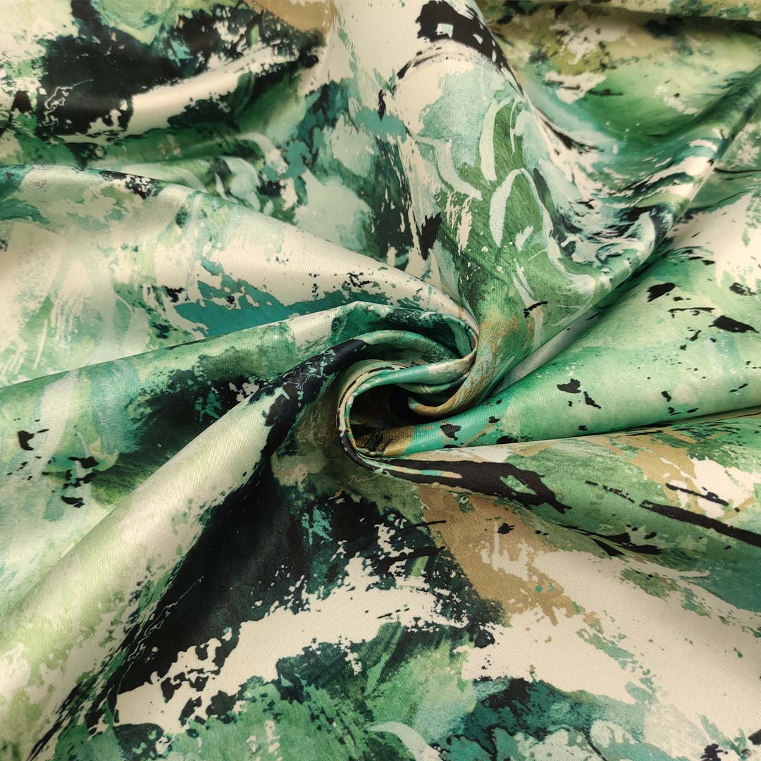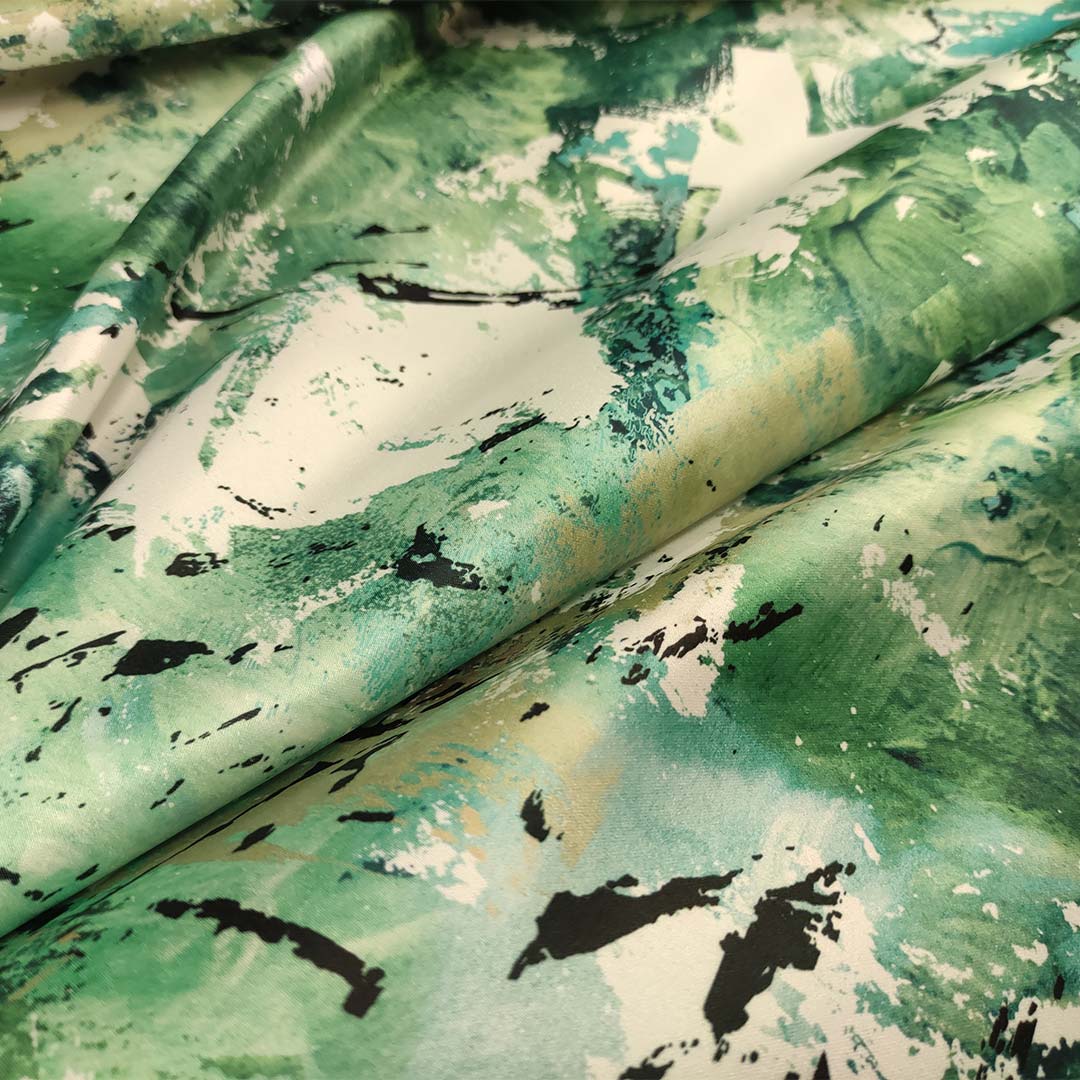 Tessuto Duchesse a fantasia motivo astratto bianco – verde – beige