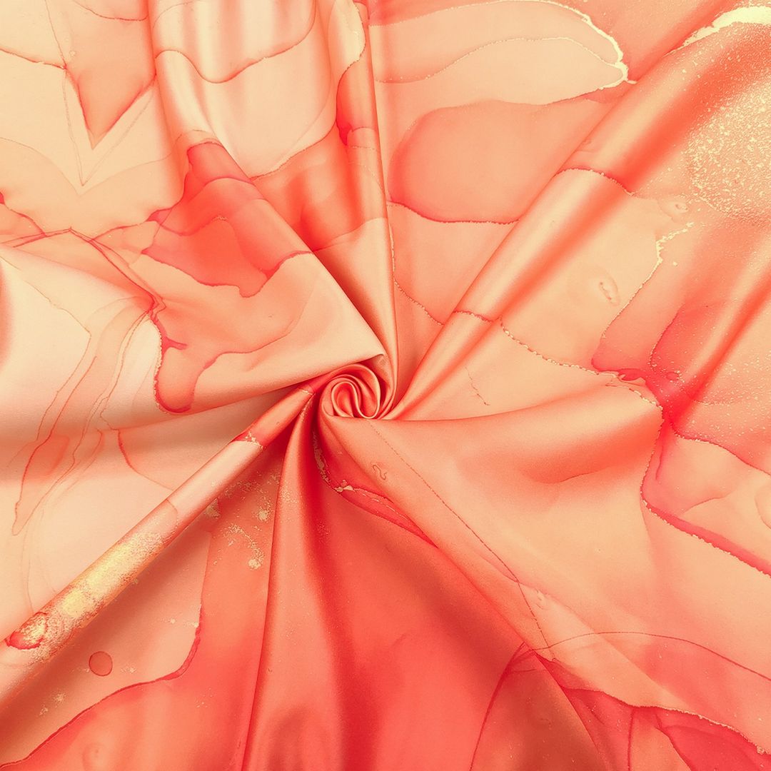 Tessuto Duchesse a fantasia motivo astratto corallo