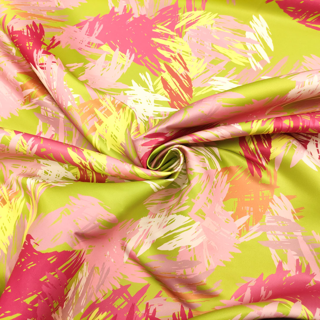 Tessuto Duchesse a fantasia motivo astratto fucsia – verde acido – rosa