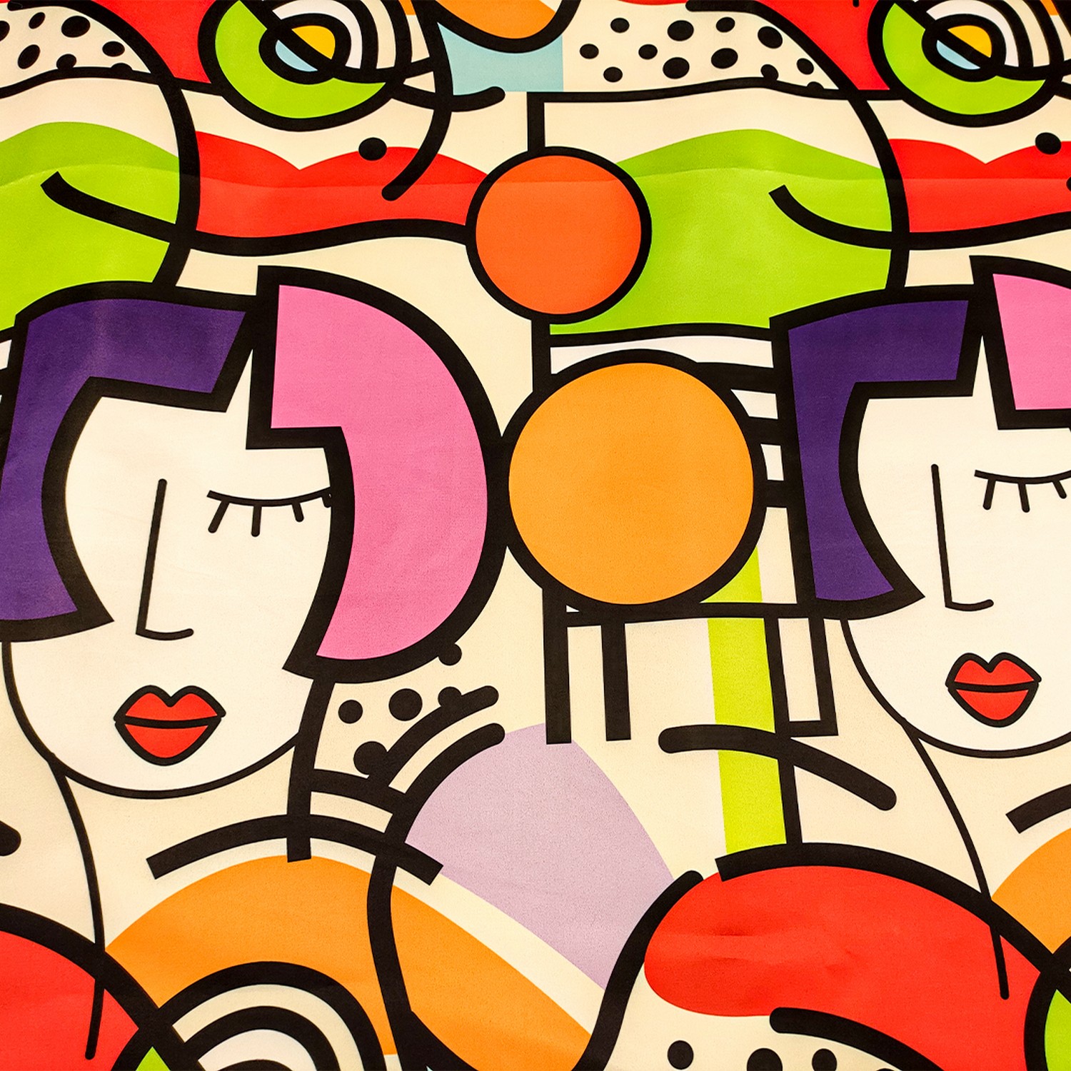 Tessuto Duchesse a fantasia motivo astratto mela – fucsia – arancione