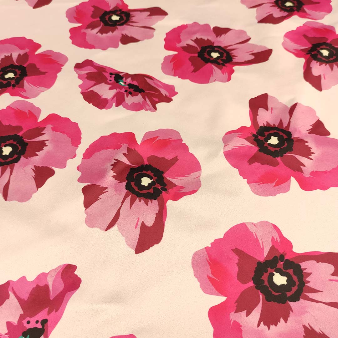 Tessuto Duchesse a fantasia motivo floreale bianco – fucsia
