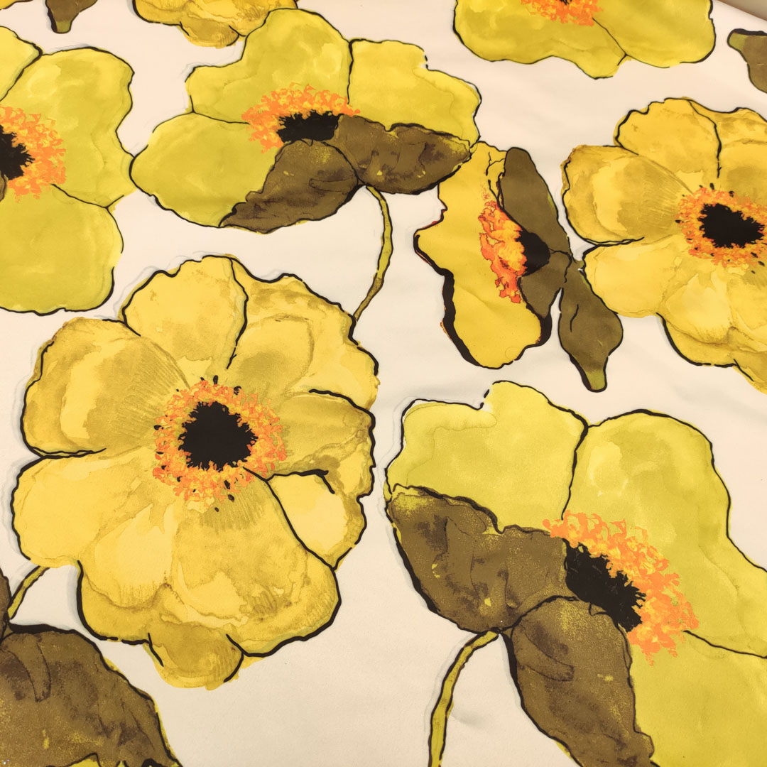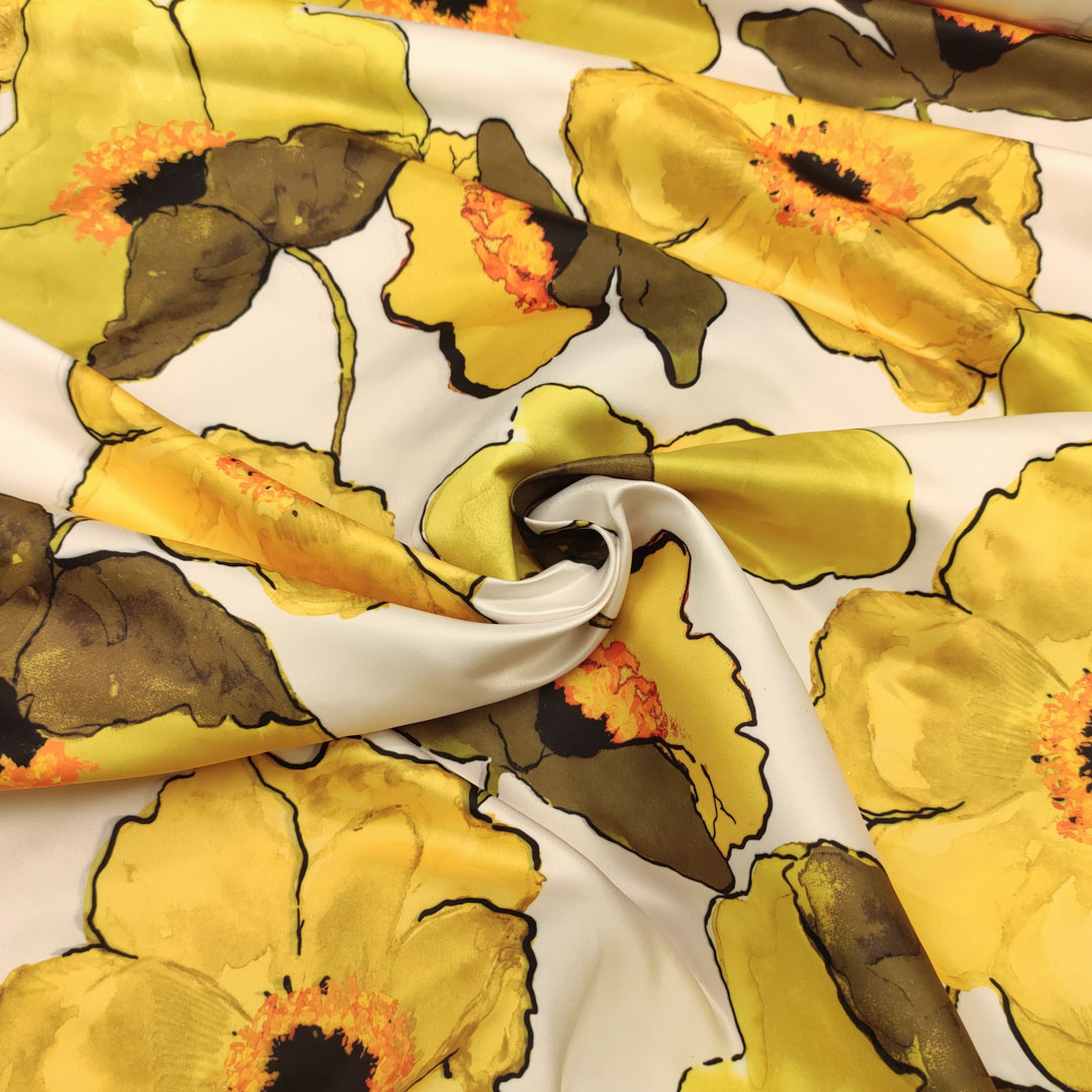Tessuto Duchesse a fantasia motivo floreale cedro – bianco – verde