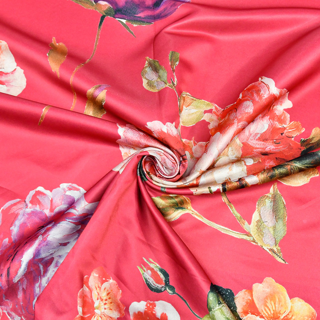 Tessuto Duchesse a fantasia motivo floreale fucsia – verde