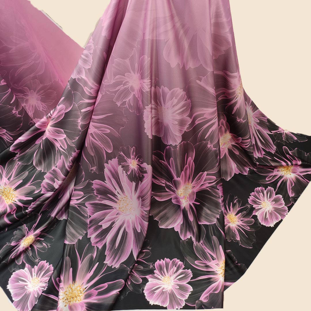 Tessuto Duchesse a fantasia motivo floreale glicine – grigio – nero
