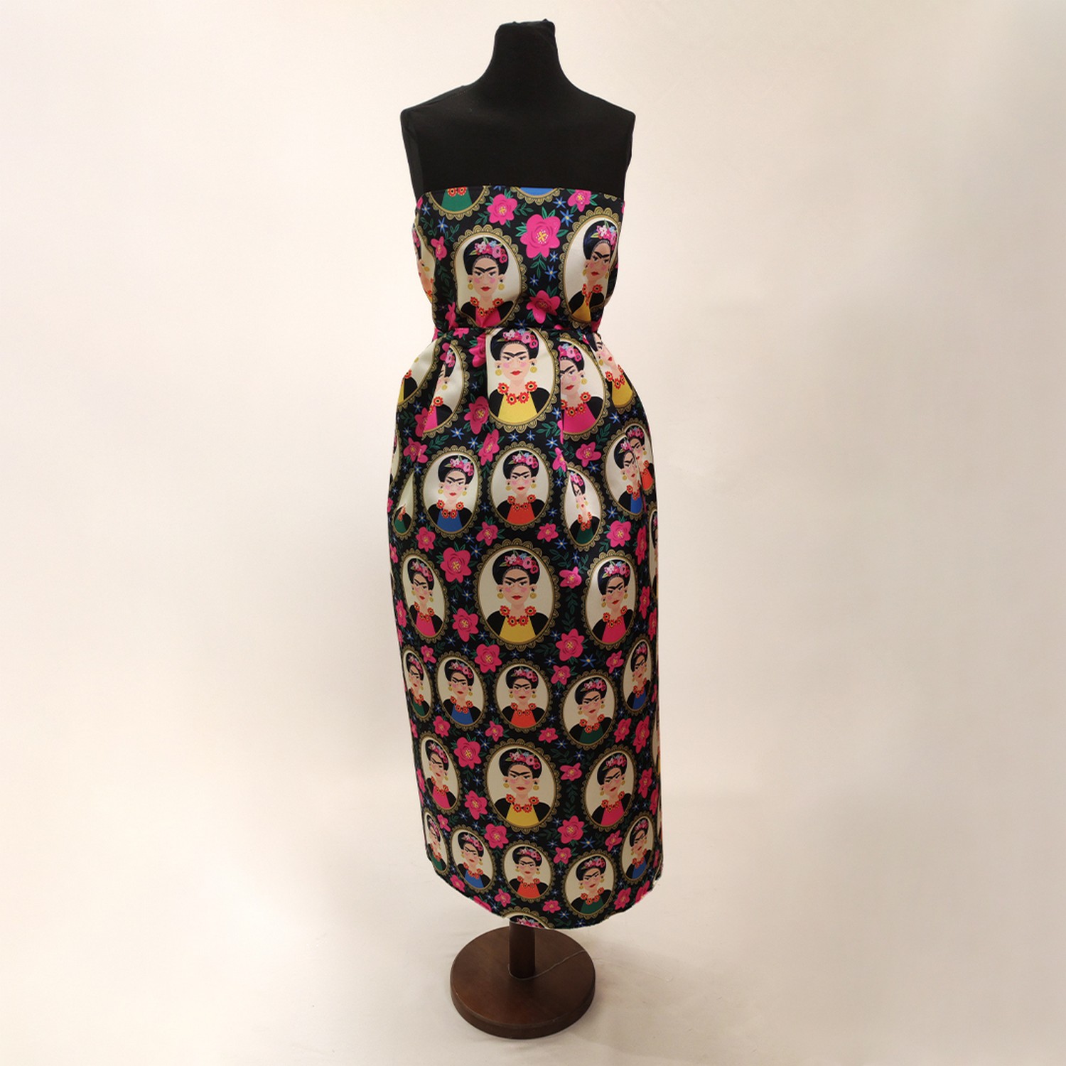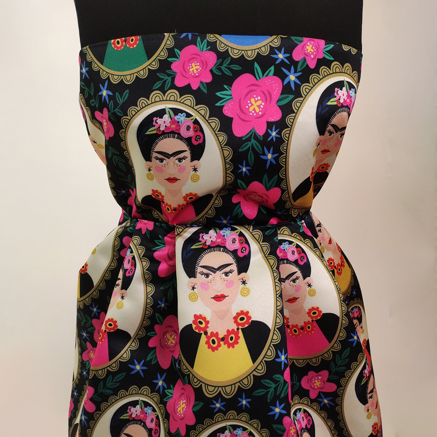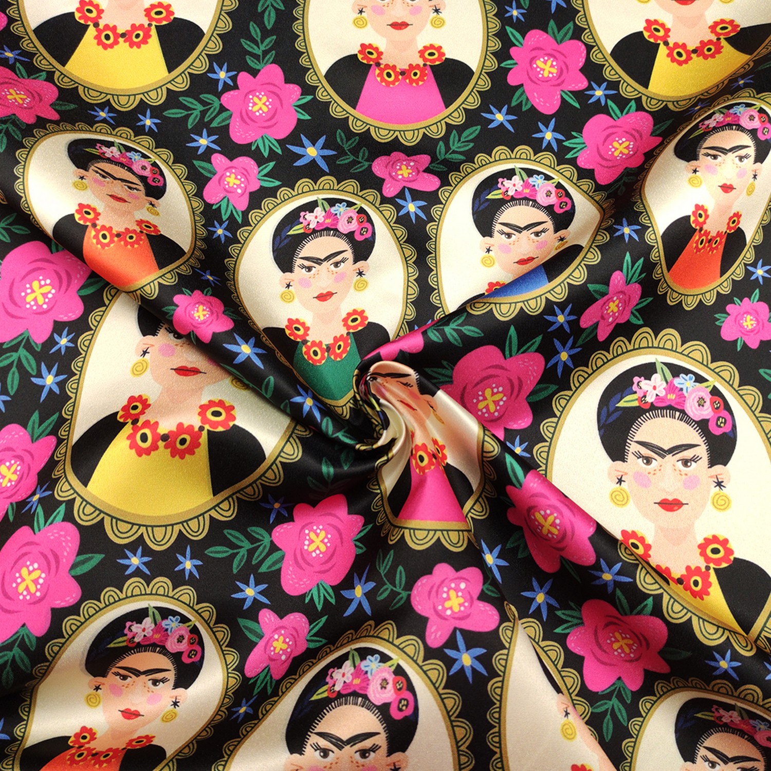 Tessuto duchesse a fantasia motivo floreale nero – fucsia – verde