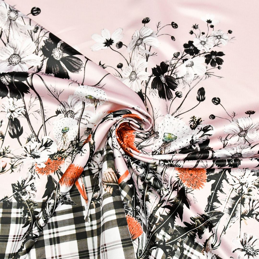 Tessuto Duchesse a fantasia motivo floreale rosa – nero