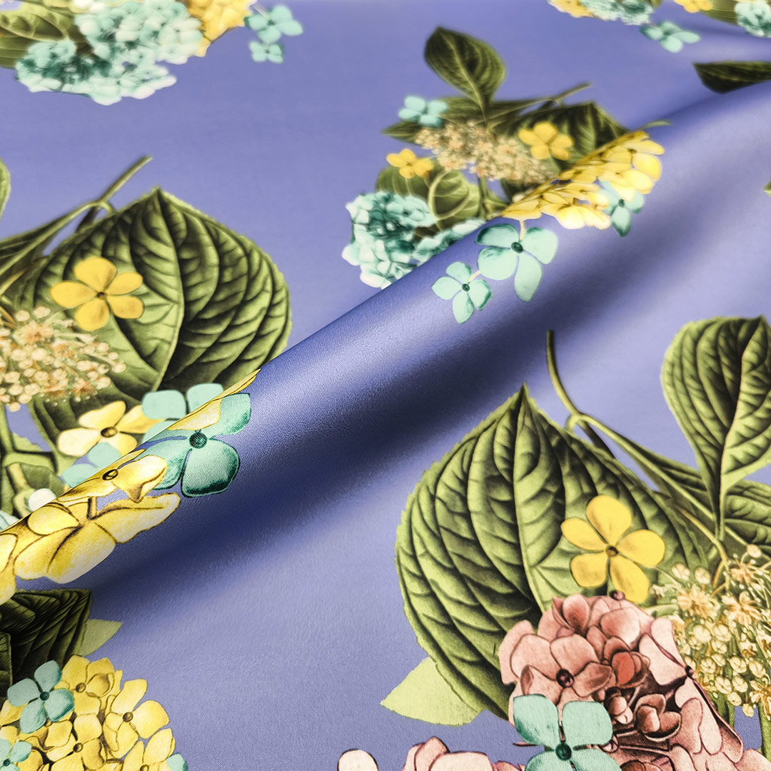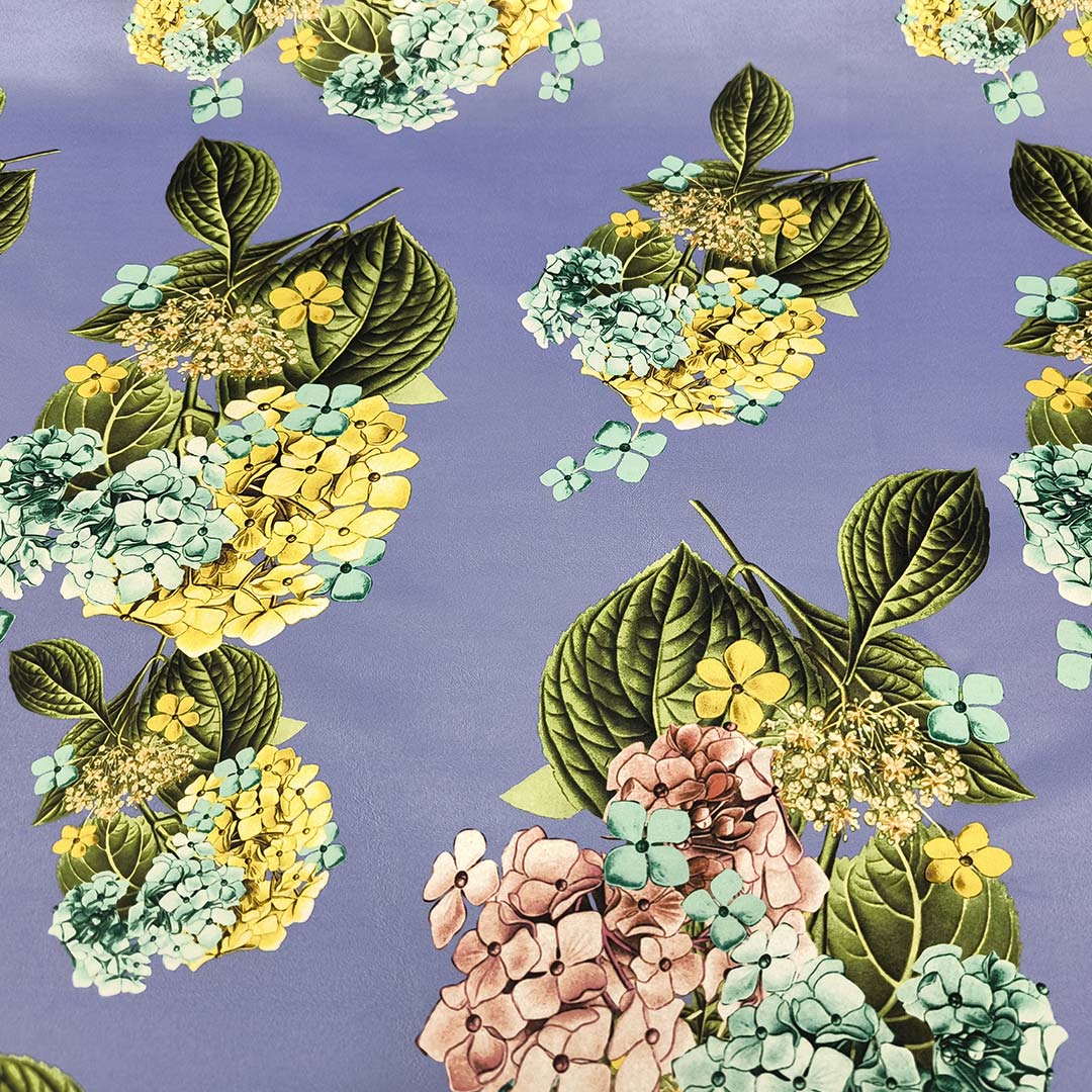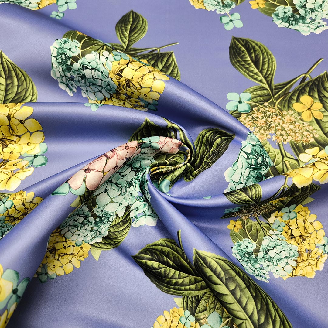 Tessuto Duchesse a fantasia motivo floreale very peri – giallo – tiffany