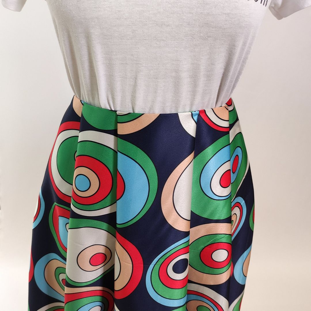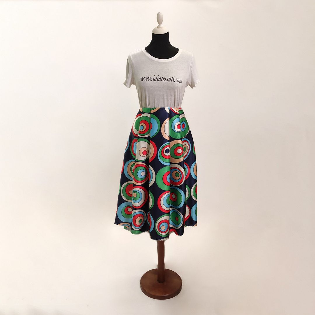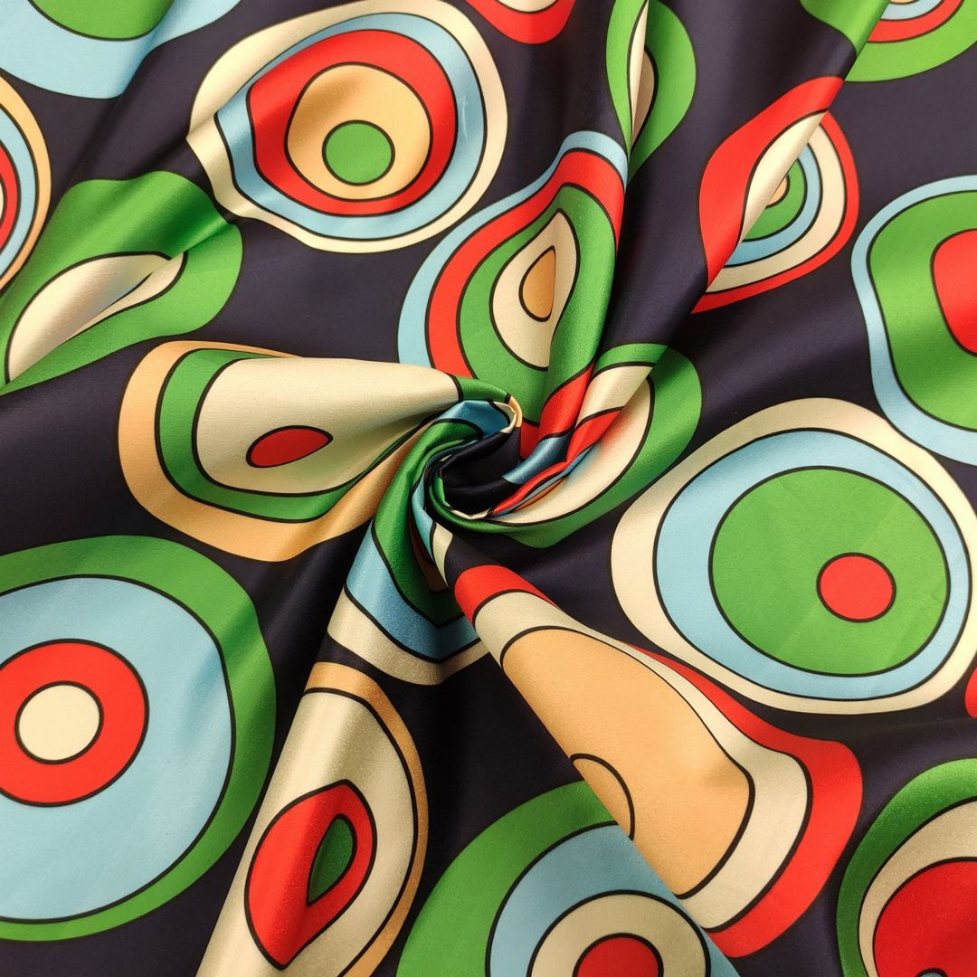 Tessuto Duchesse a fantasia motivo geometrico blu – celeste – rosso – verde