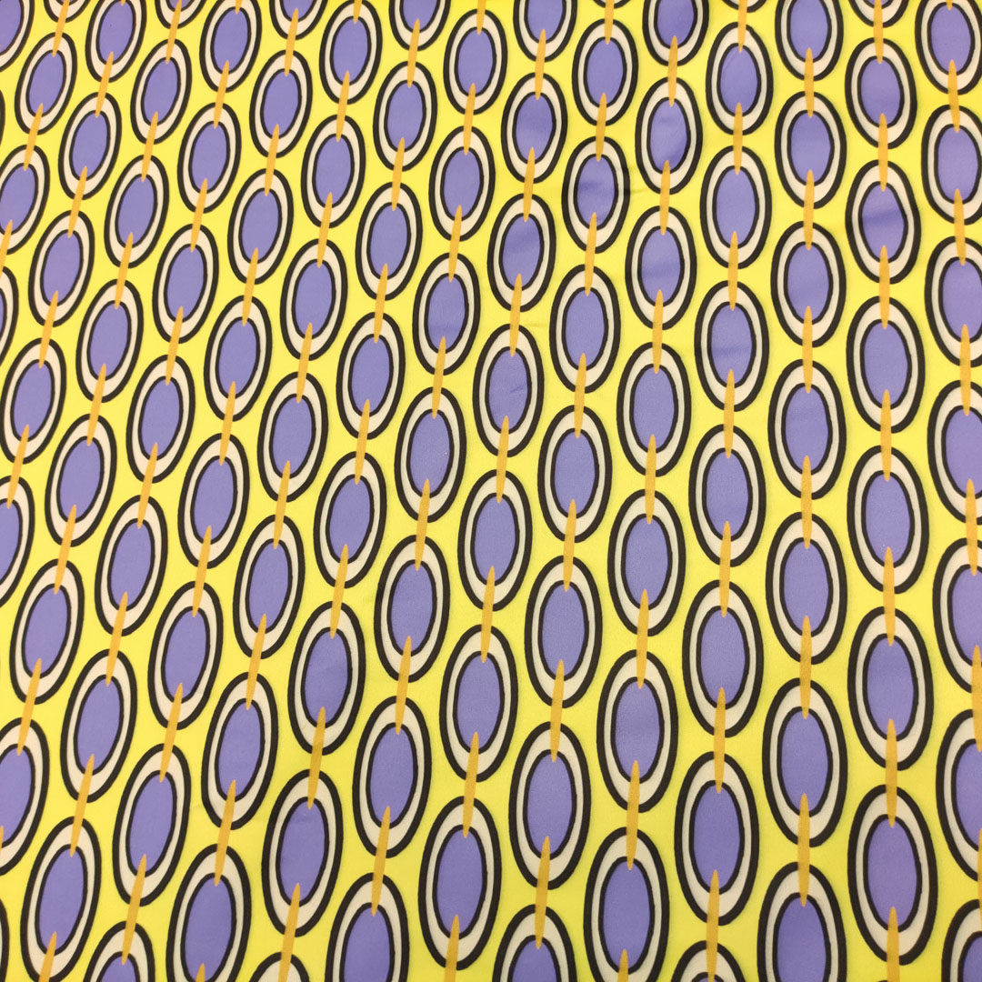 Tessuto Duchesse a fantasia motivo geometrico lilla – lime