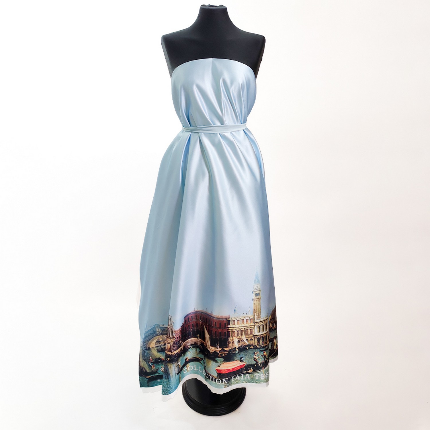 Tessuto Duchesse a fantasia dalla mano semirigida e rasata, dall’aspetto semilucido ideale per realizzare capi da cerimonia come: gonnelloni, abiti, gonne, giacche, tailleur e basi per abiti da sposa. Altezza fiori 40 cm. Selezione Iaia Collection