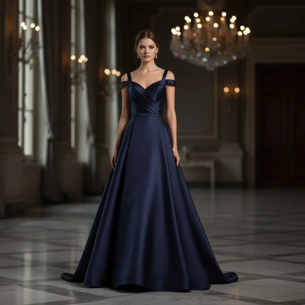 Tessuto Duchesse elasticizzato in tinta unita blu notte