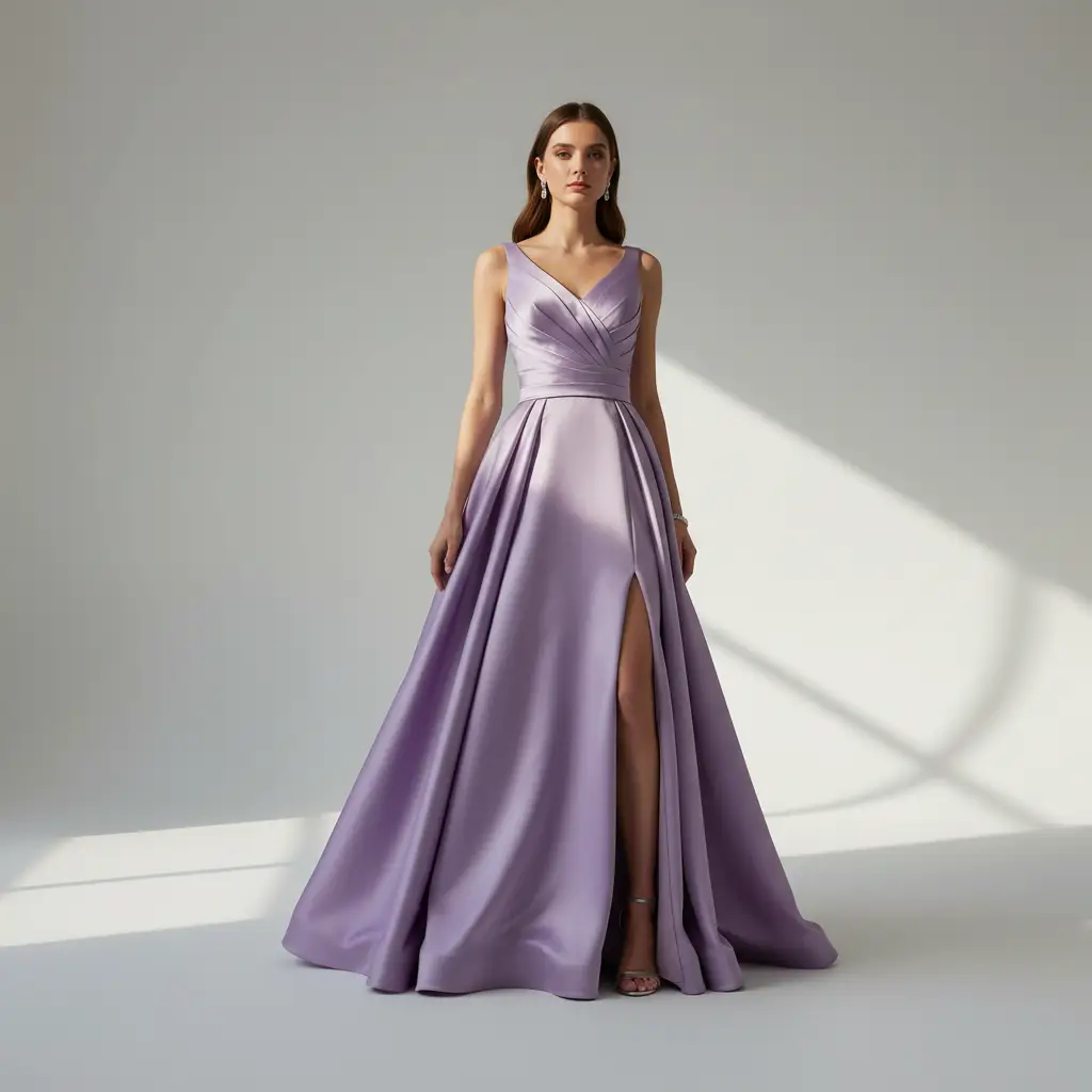 Tessuto Duchesse elasticizzato in tinta unita dalla mano semirigida e rasata, dall’aspetto lucido, ideale per realizzare capi da cerimonia come: gonnelloni, abiti, gonne, giacche, tailleur e basi per abiti da sposa. La sua leggera elasticità aumenta la vestibilità e la capacità di adattarsi a tutte le forme del corpo.