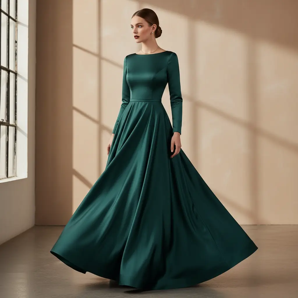 Tessuto Duchesse elasticizzato in tinta unita dalla mano semirigida e rasata, dall’aspetto lucido, ideale per realizzare capi da cerimonia come: gonnelloni, abiti, gonne, giacche, tailleur e basi per abiti da sposa. La sua leggera elasticità aumenta la vestibilità e la capacità di adattarsi a tutte le forme del corpo.