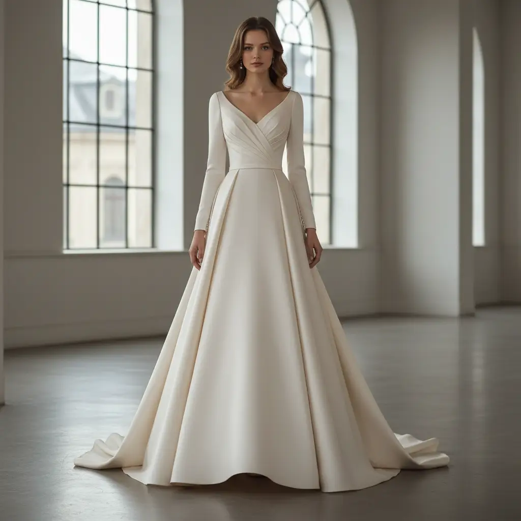 Tessuto Duchesse in tinta unita dalla mano morbida e rasata, dall’ aspetto semilucido ideale per realizzare capi da cerimonia come: gonnelloni, abiti, gonne, giacche, tailleur e basi per abiti da sposa.