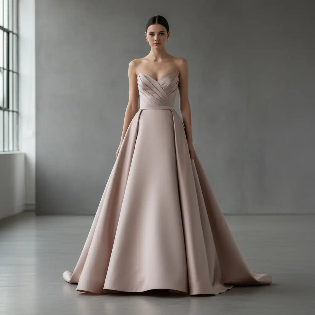 Tessuto Duchesse in tinta unita dalla mano morbida e rasata, dall’ aspetto semilucido ideale per realizzare capi da cerimonia come: gonnelloni, abiti, gonne, giacche, tailleur e basi per abiti da sposa.
