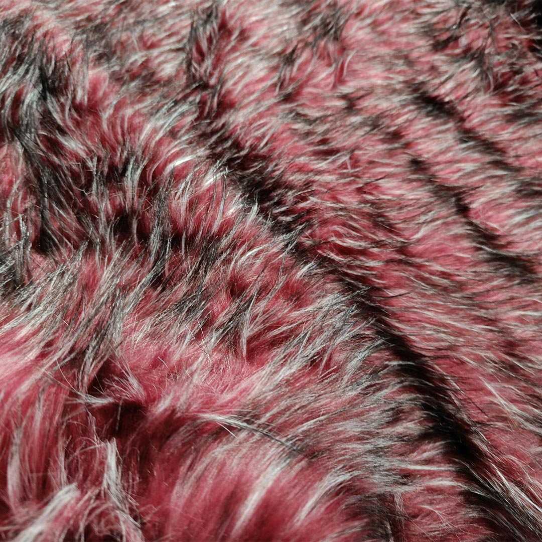 Tessuto Eco Pelliccia a pelo lungo motivo sfumato bordeaux – nero – bianco