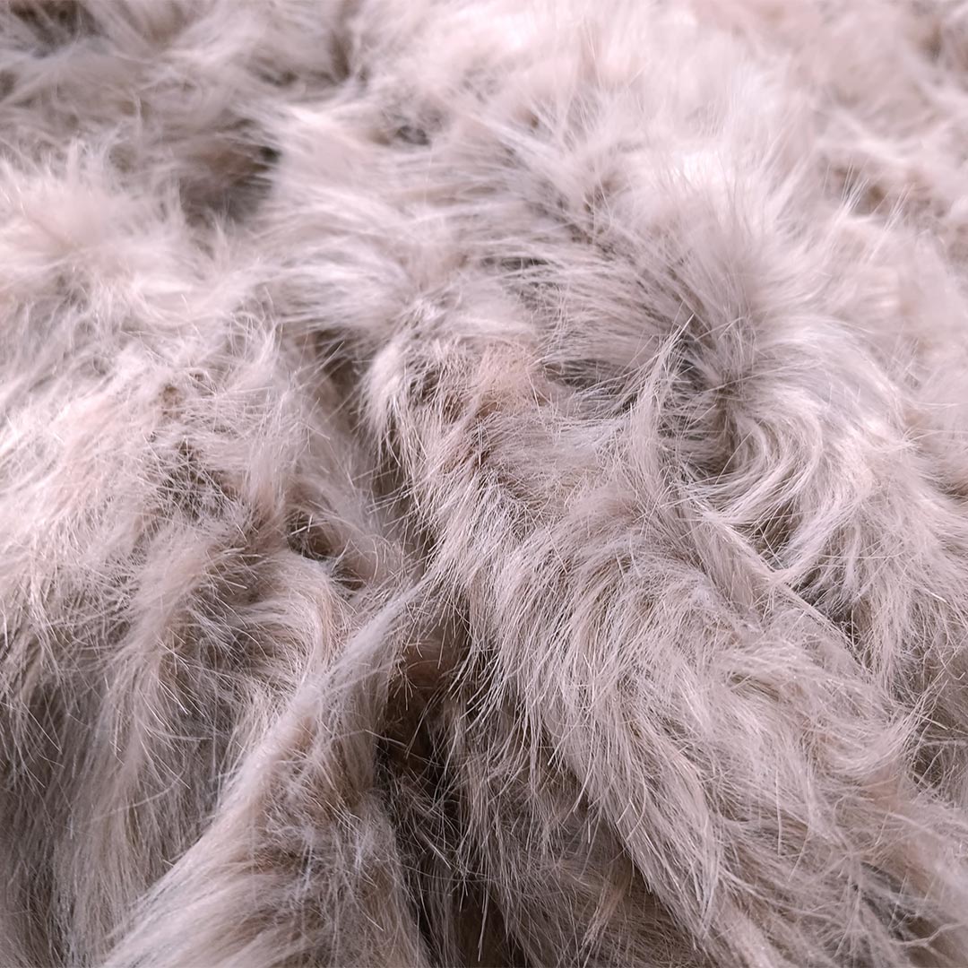 Tessuto Eco Pelliccia a pelo lungo motivo sfumato ideale per realizzare capi da utilizzare nella stagione invernale come: cappe, mantelle, giacche e capispalla in genere.