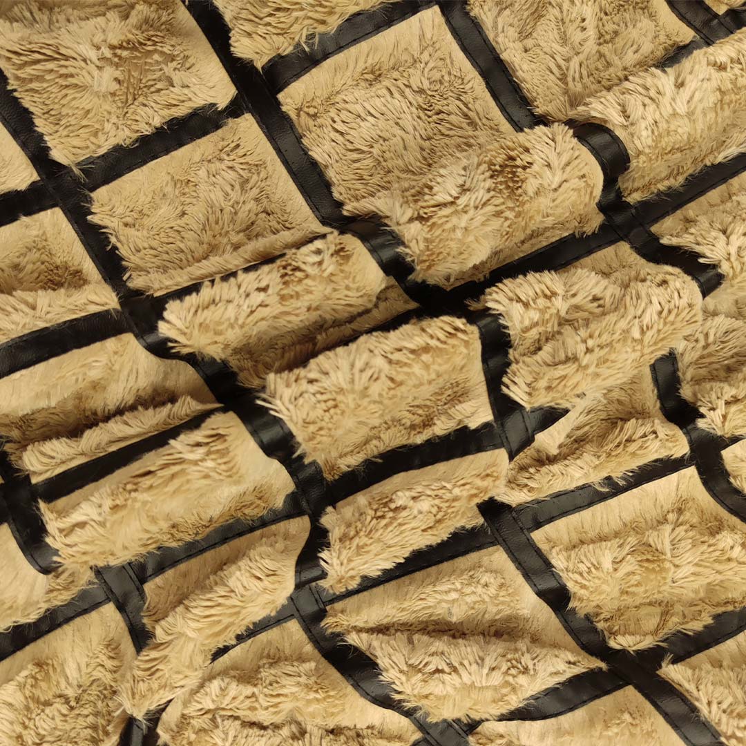 Tessuto Eco Pelliccia lavorato con ecopelle motivo rombi beige – nero