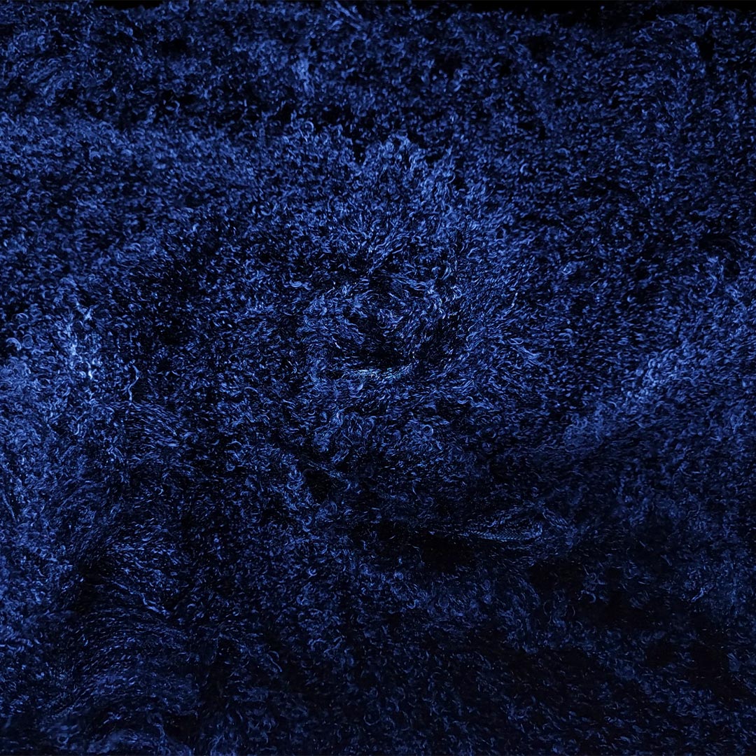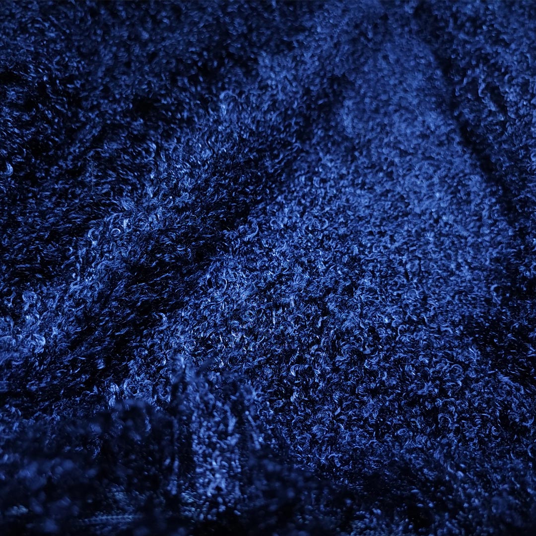 Tessuto Eco Pelliccia Mongolia a pelo riccio tinta unita blu