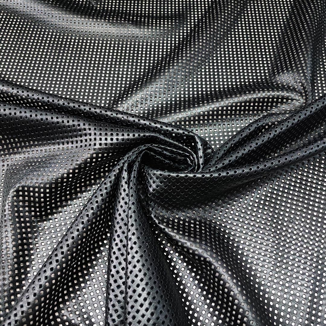 Tessuto Ecopelle elasticizzata per abbigliamento motivo traforato nero