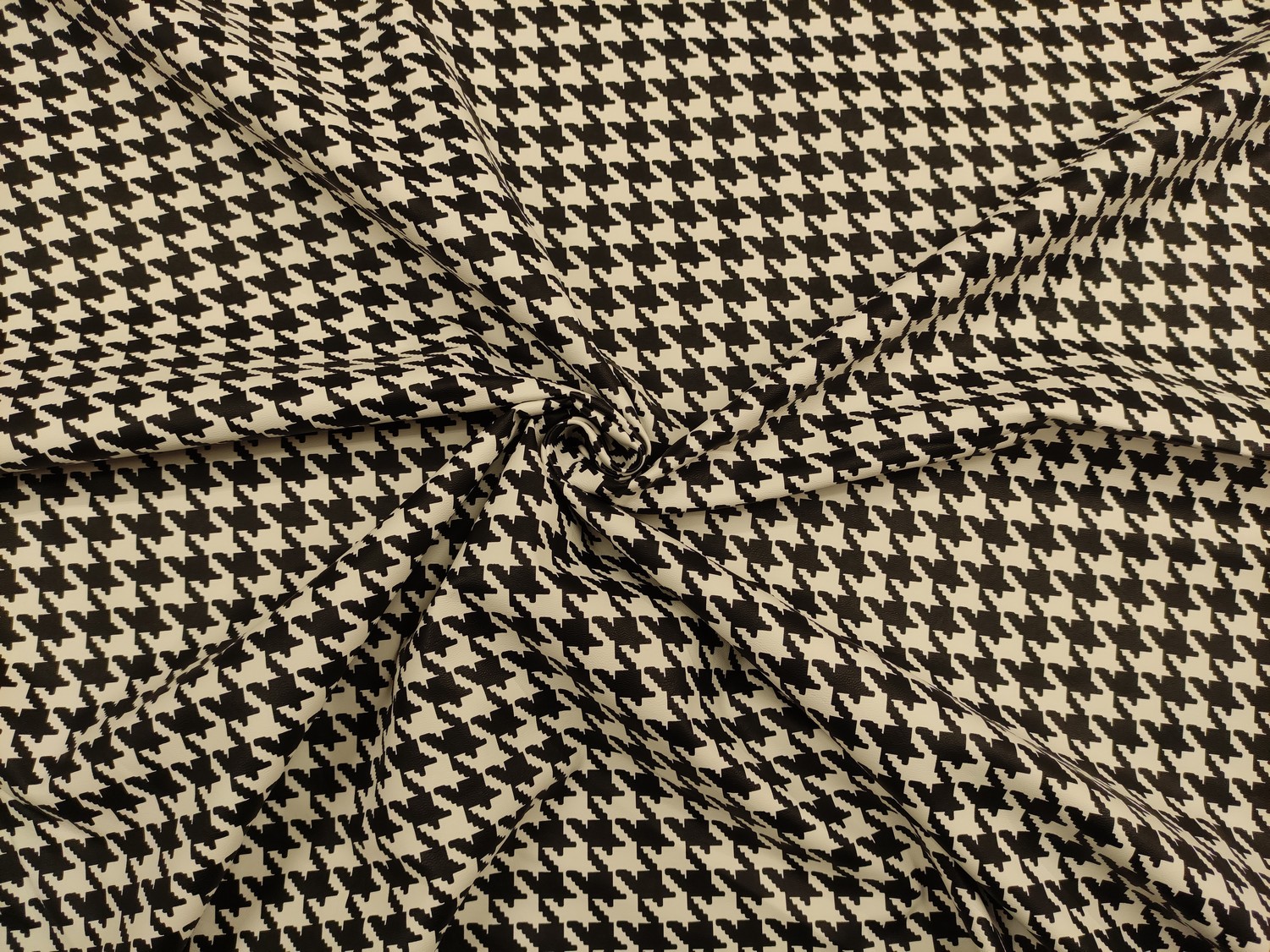 Tessuto Ecopelle per abbigliamento motivo piede de poule bianco – nero