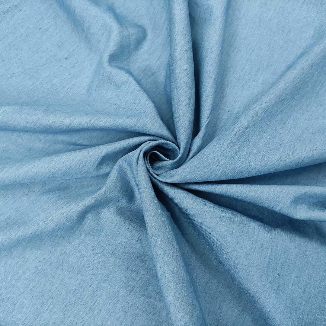 Tessuto Jeans Chambray  tinta unita, dalla mano morbida e cadente, si presta alla creazione di capi freschi e comodi da utilizzare nella stagione Primavera – Estate come: gonne, pantaloni, spolverini, abiti e gonne.