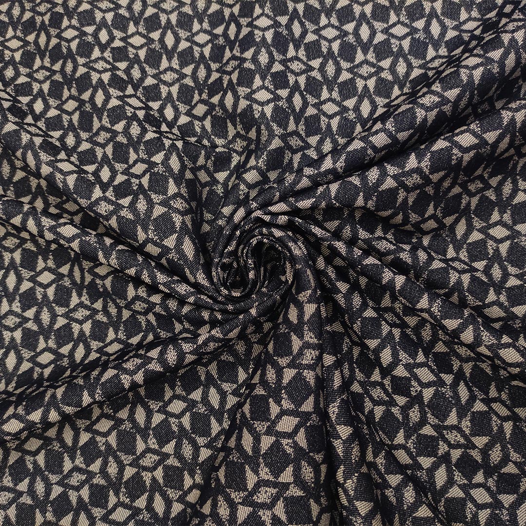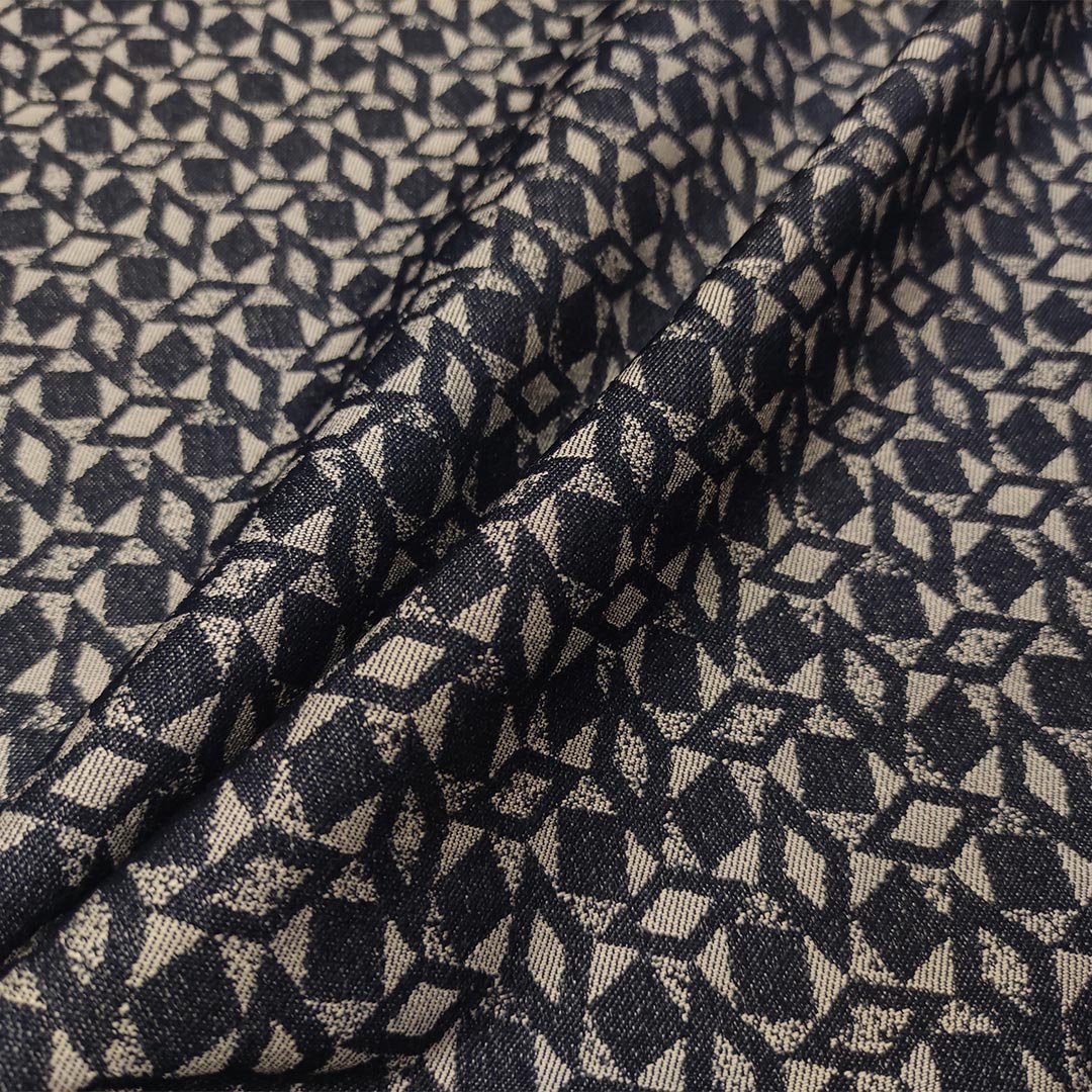Tessuto Jeans elasticizzato a fantasia motivo geometrico grigio – blu