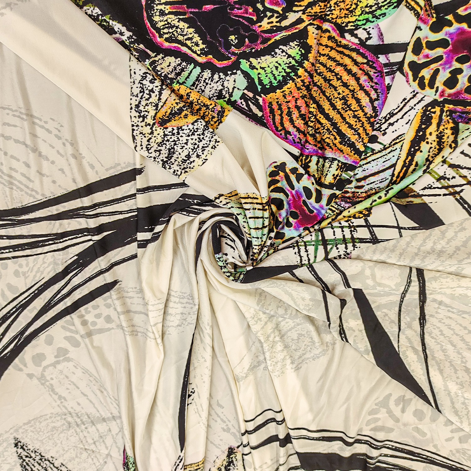 Tessuto jersey di viscosa a fantasia motivo astratto panna – ocra – fucsia