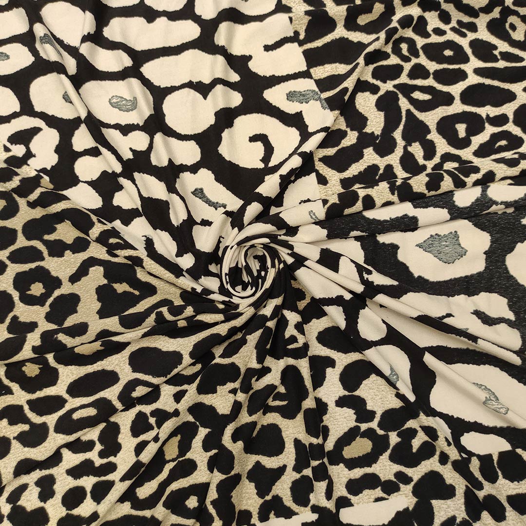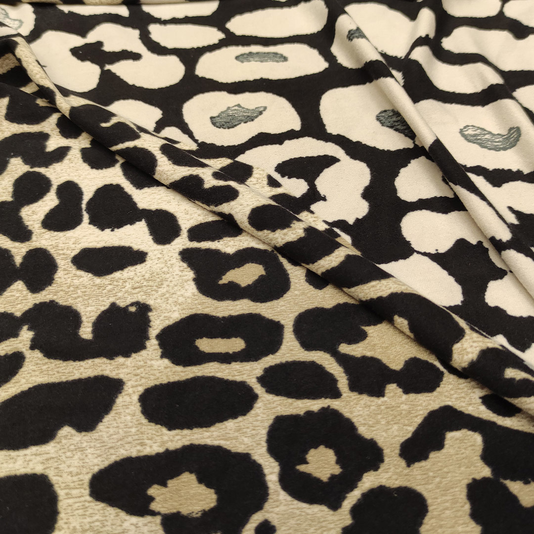 Tessuto Jersey a fantasia motivo animalier tortora – nero – beige