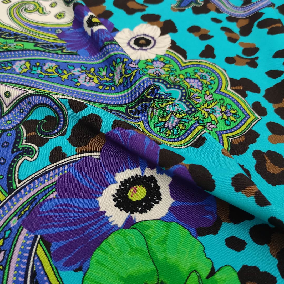 Tessuto Jersey a fantasia motivo animalier turchese – bianco – verde – nero – marrone