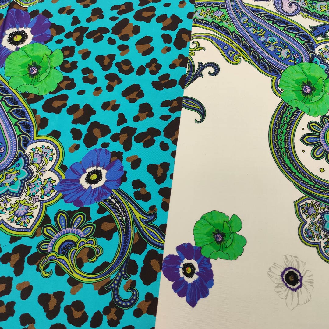 Tessuto Jersey a fantasia dalla mano morbida e fluida si presta alla creazione di capi freschi e comodi da utilizzare nella stagione primavera – estate.
