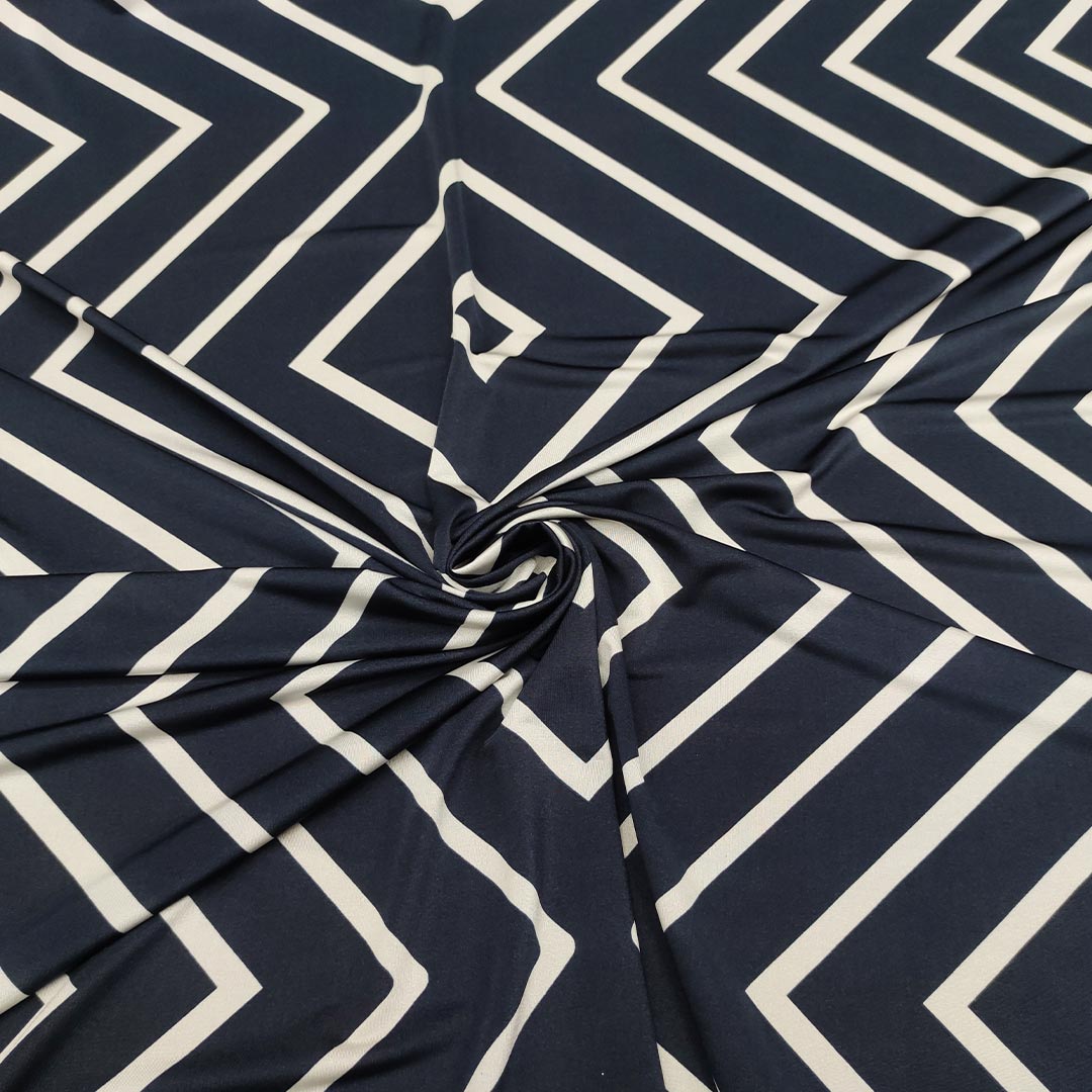 Tessuto Jersey a fantasia motivo astratto astratto blu notte – bianco