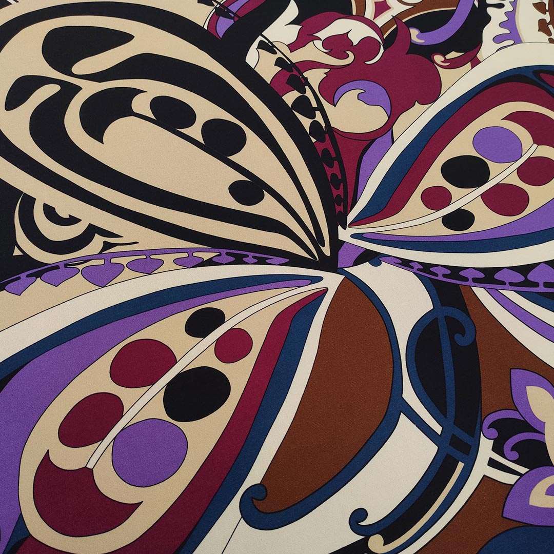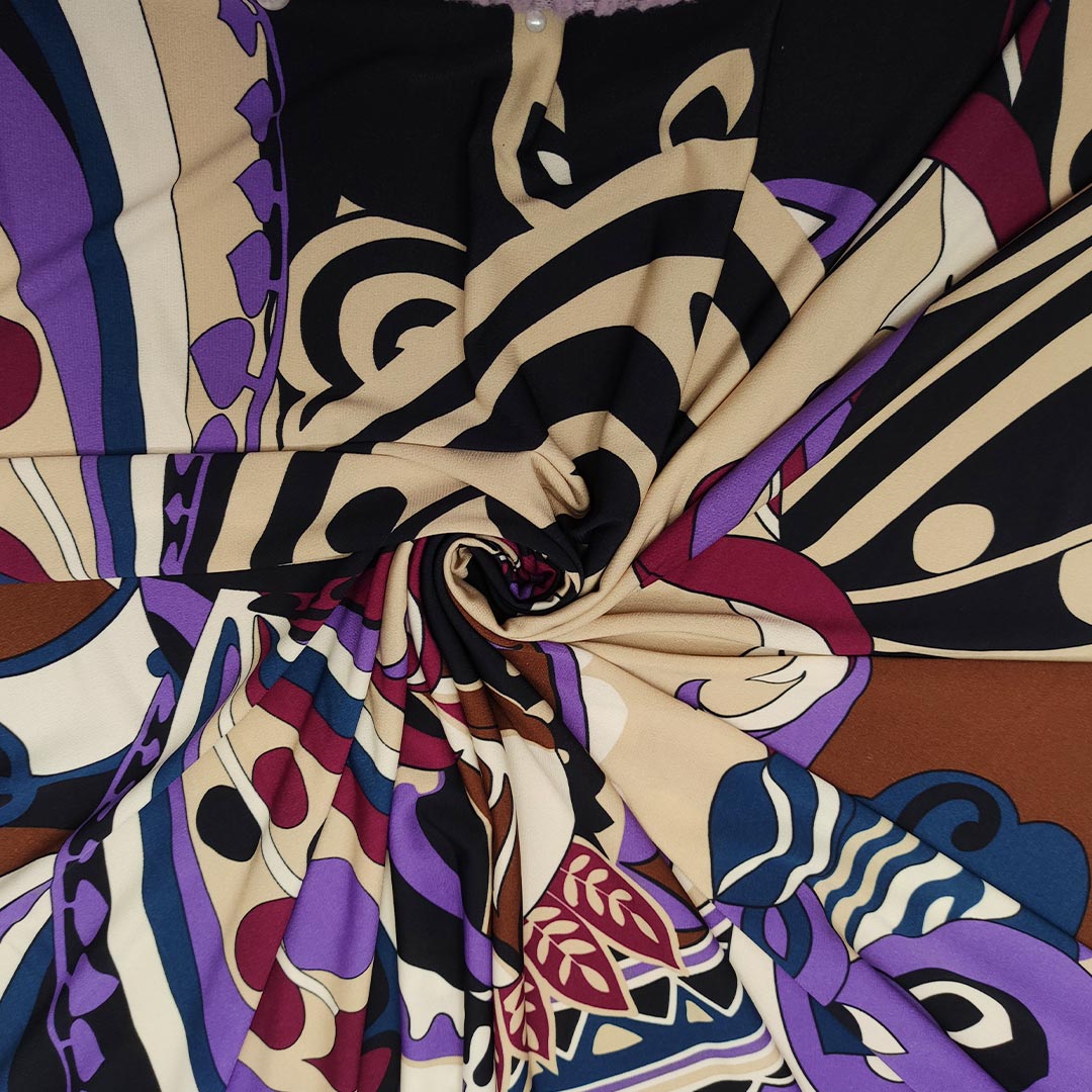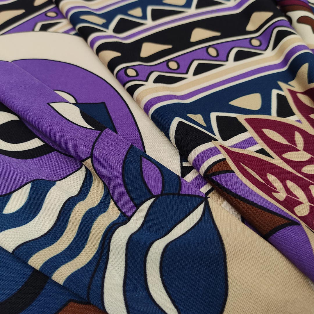 Tessuto Jersey a fantasia motivo astratto astratto nero – lilla – borgogna – tortora