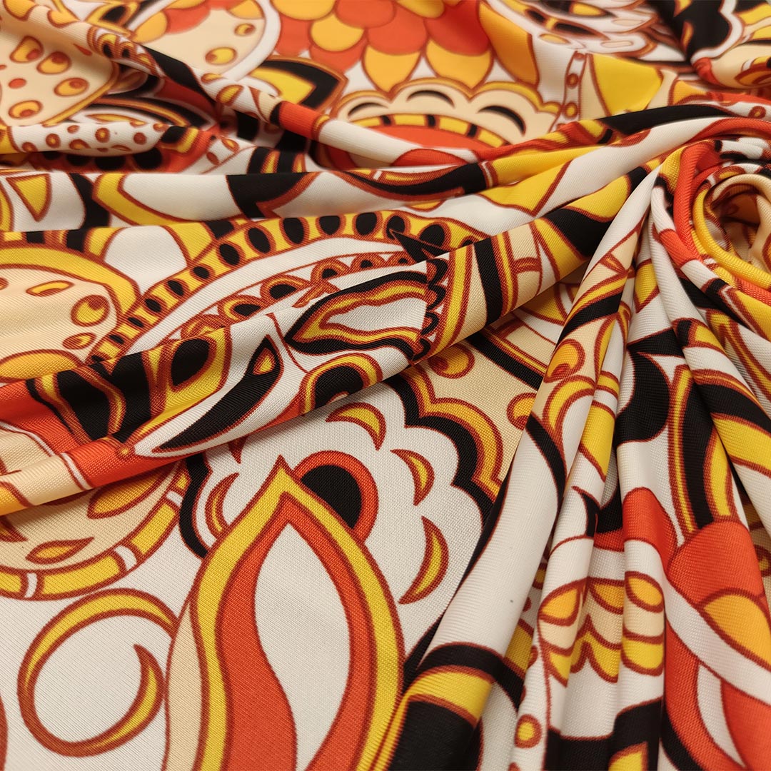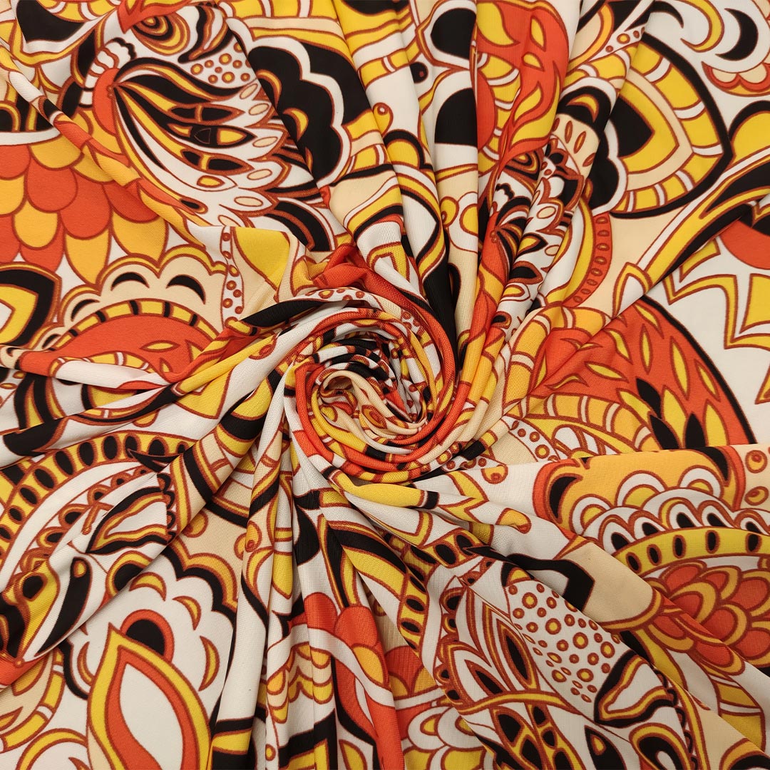 Tessuto Jersey a fantasia motivo astratto beige – giallo – nero – arancione