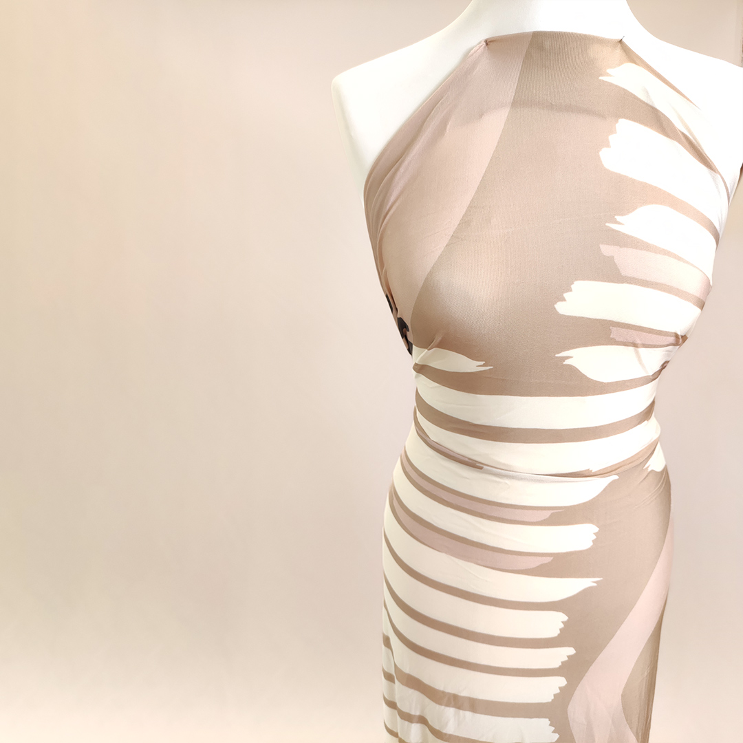 Tessuto jersey a fantasia motivo astratto beige – rosa – nero
