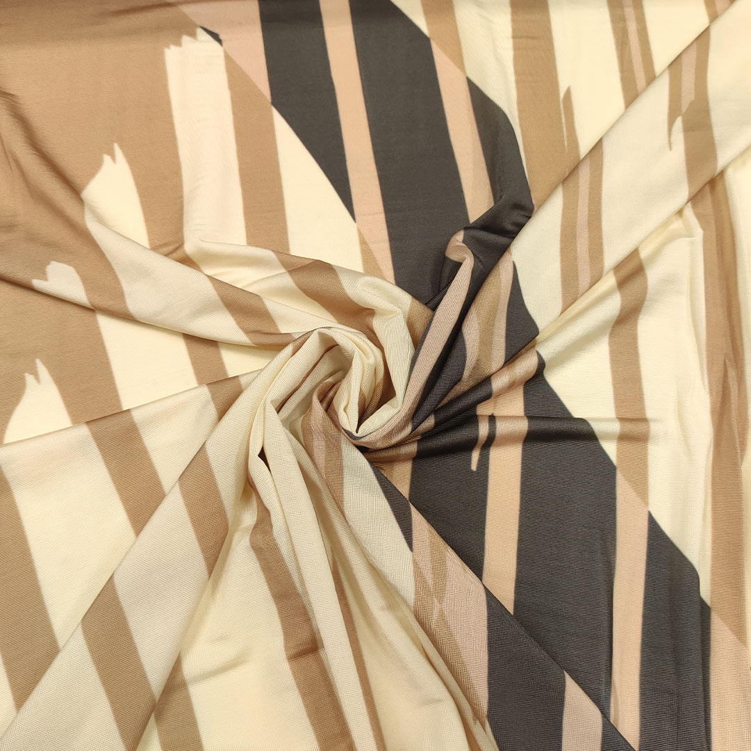 Tessuto Jersey a fantasia dalla mano morbida e fluida si presta alla creazione di capi freschi e comodi da utilizzare nella stagione primavera – estate.