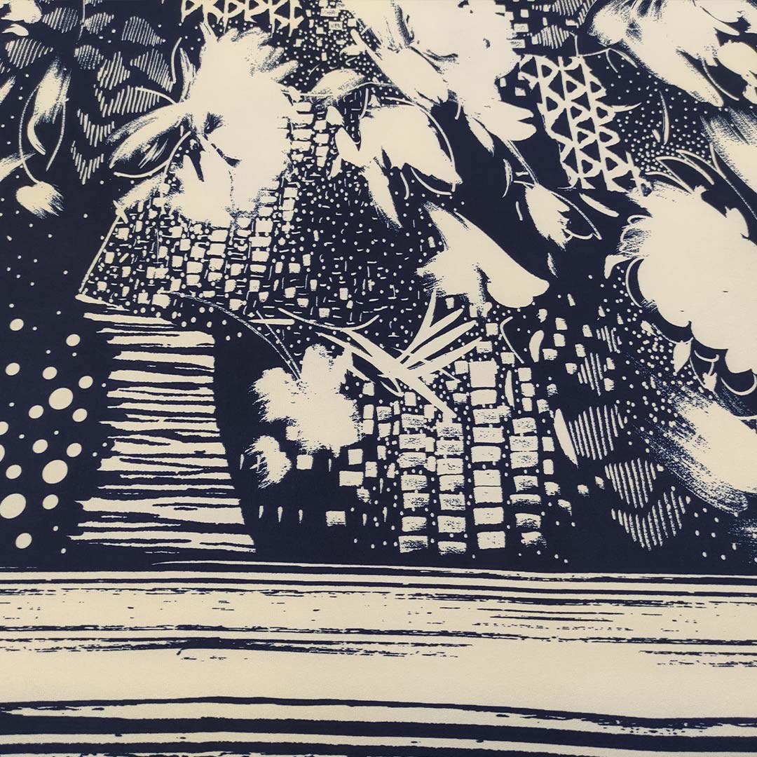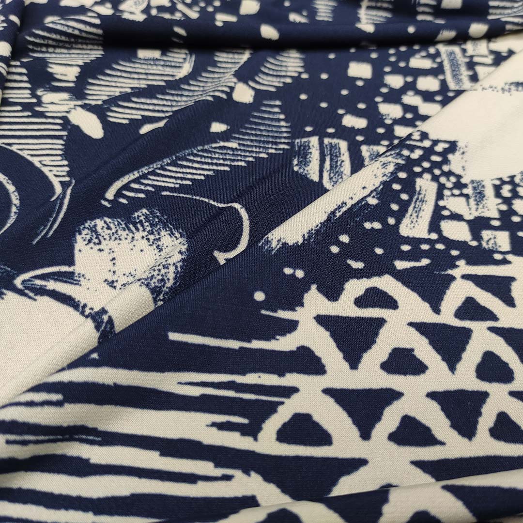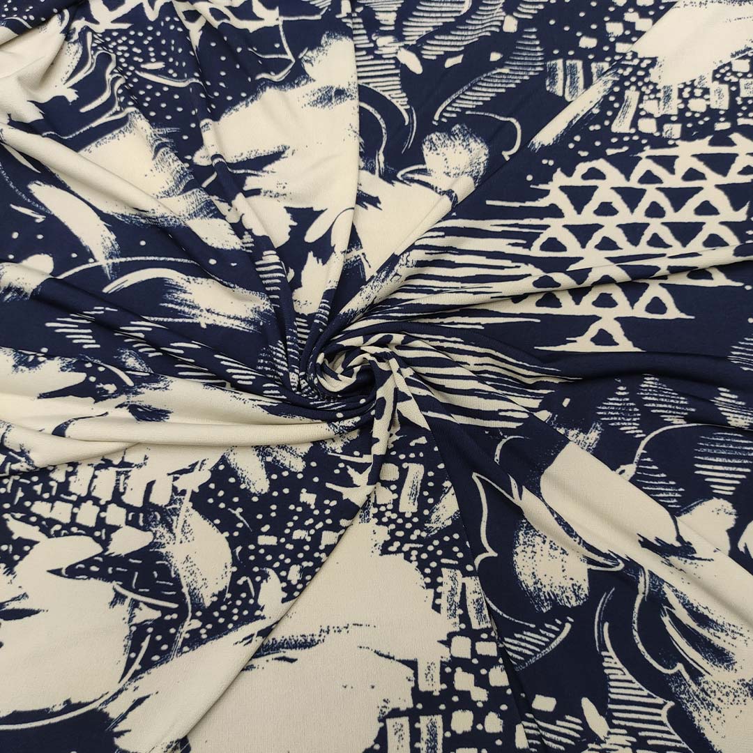 Tessuto Jersey a fantasia motivo astratto bianco – blu