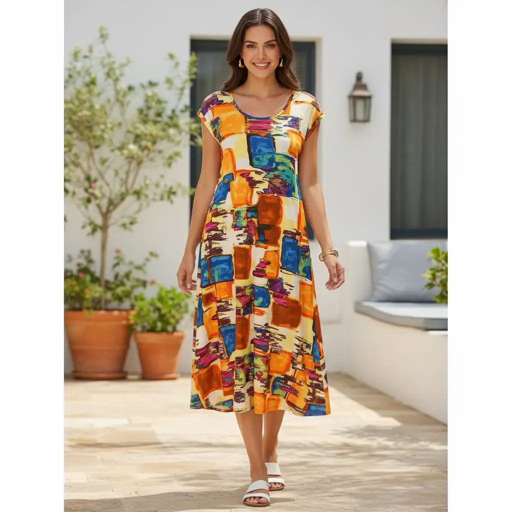 Tessuto Jersey a fantasia dalla mano morbida e fluida si presta alla creazione di capi freschi e comodi da utilizzare nella stagione primavera – estate.