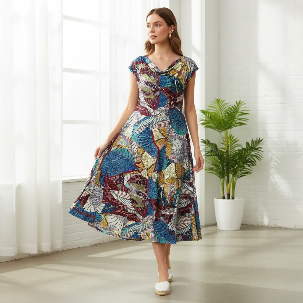 Tessuto Jersey a fantasia dalla mano morbida e fluida si presta alla creazione di capi freschi e comodi da utilizzare nella stagione primavera – estate.