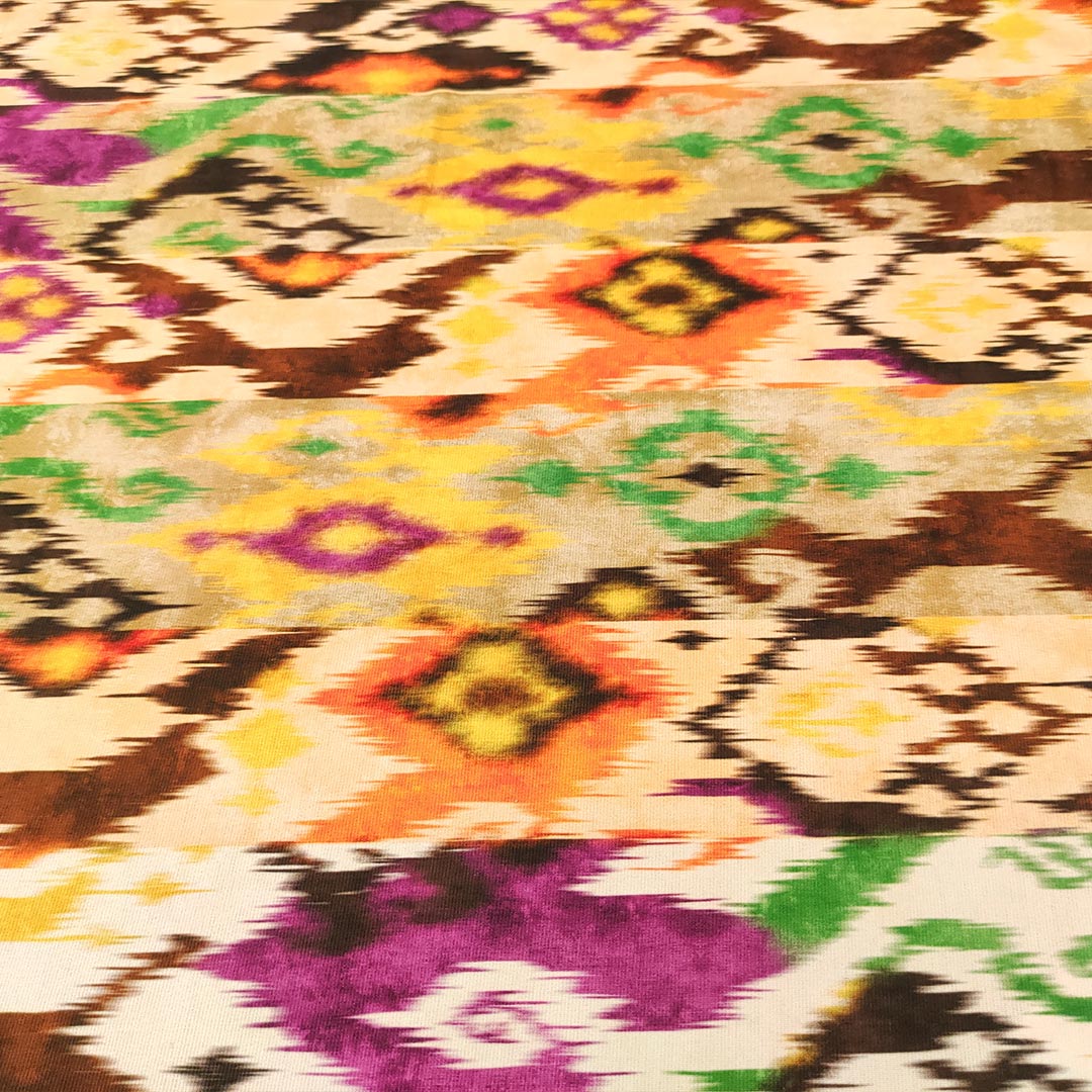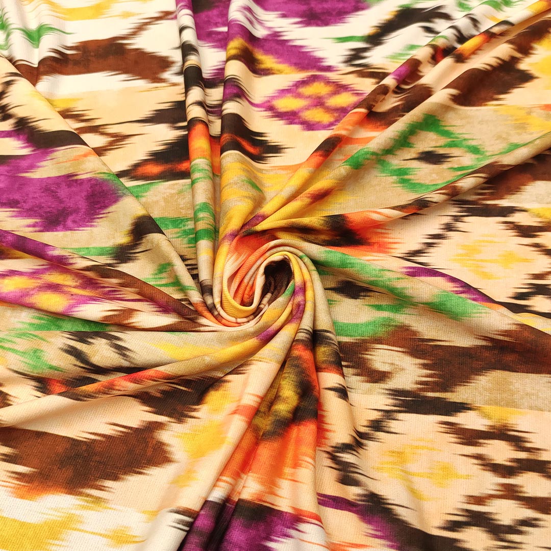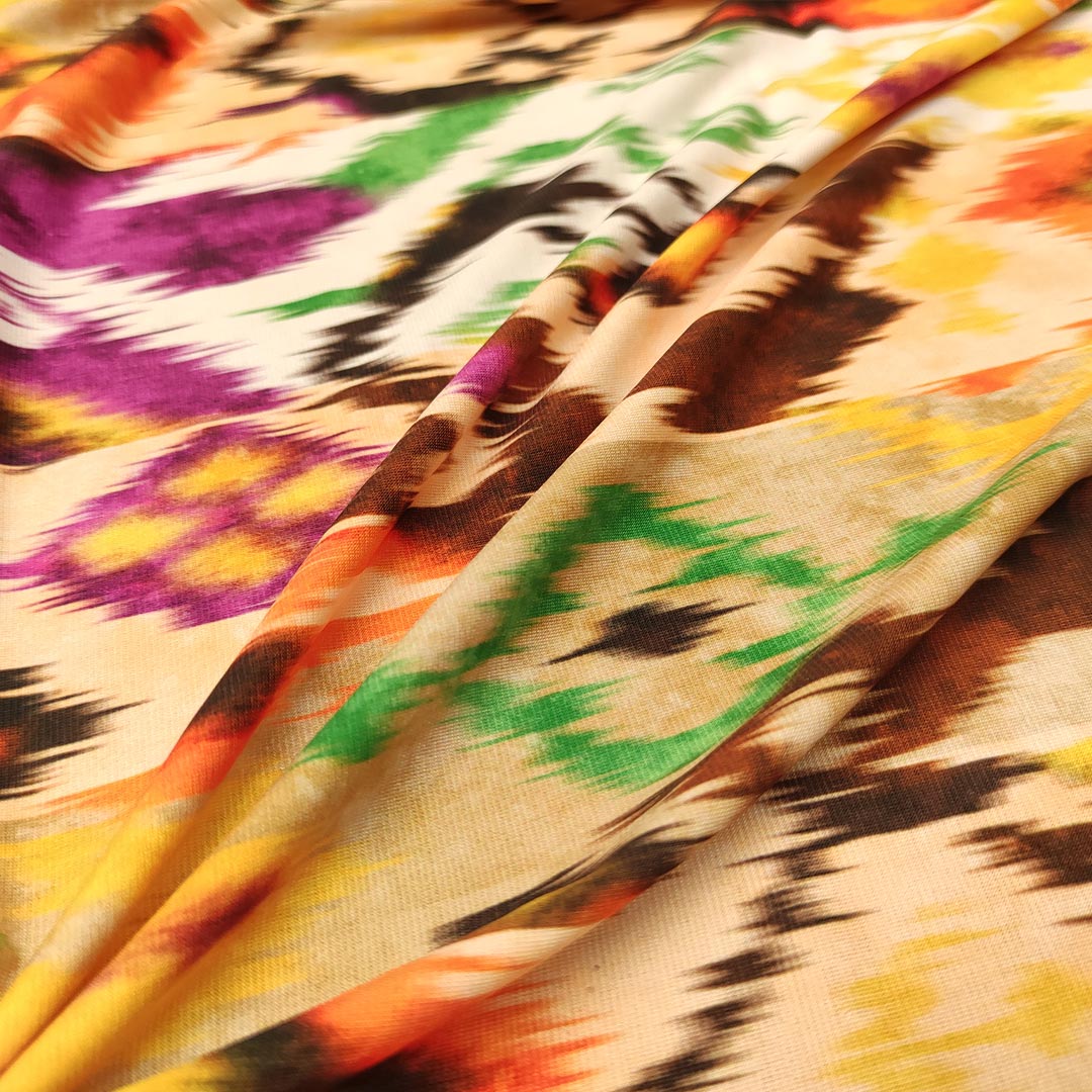 Tessuto Jersey a fantasia motivo astratto fucsia – beige – marrone – arancione