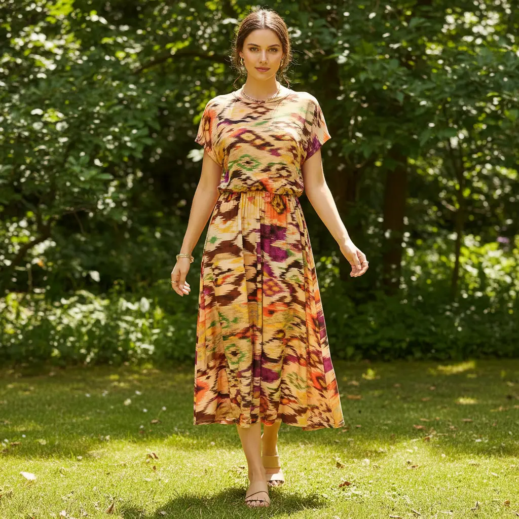 Tessuto Jersey a fantasia dalla mano morbida e fluida si presta alla creazione di capi freschi e comodi da utilizzare nella stagione primavera – estate.