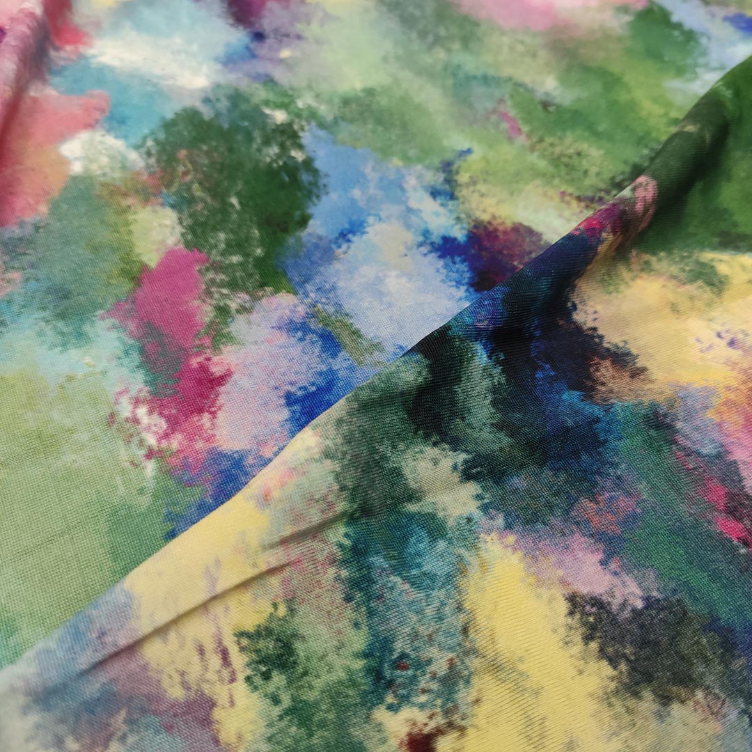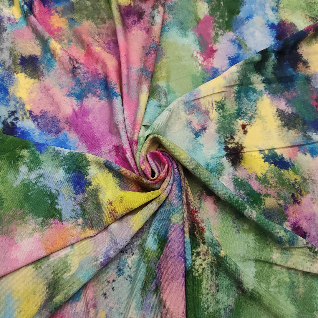 Tessuto Jersey a fantasia dalla mano morbida e fluida si presta alla creazione di capi freschi e comodi da utilizzare nella stagione primavera – estate.