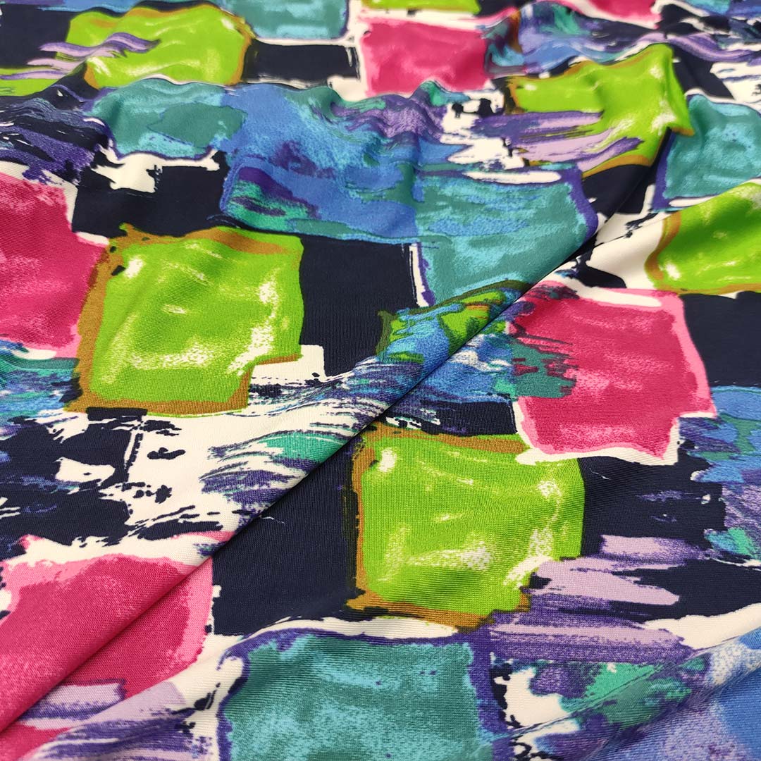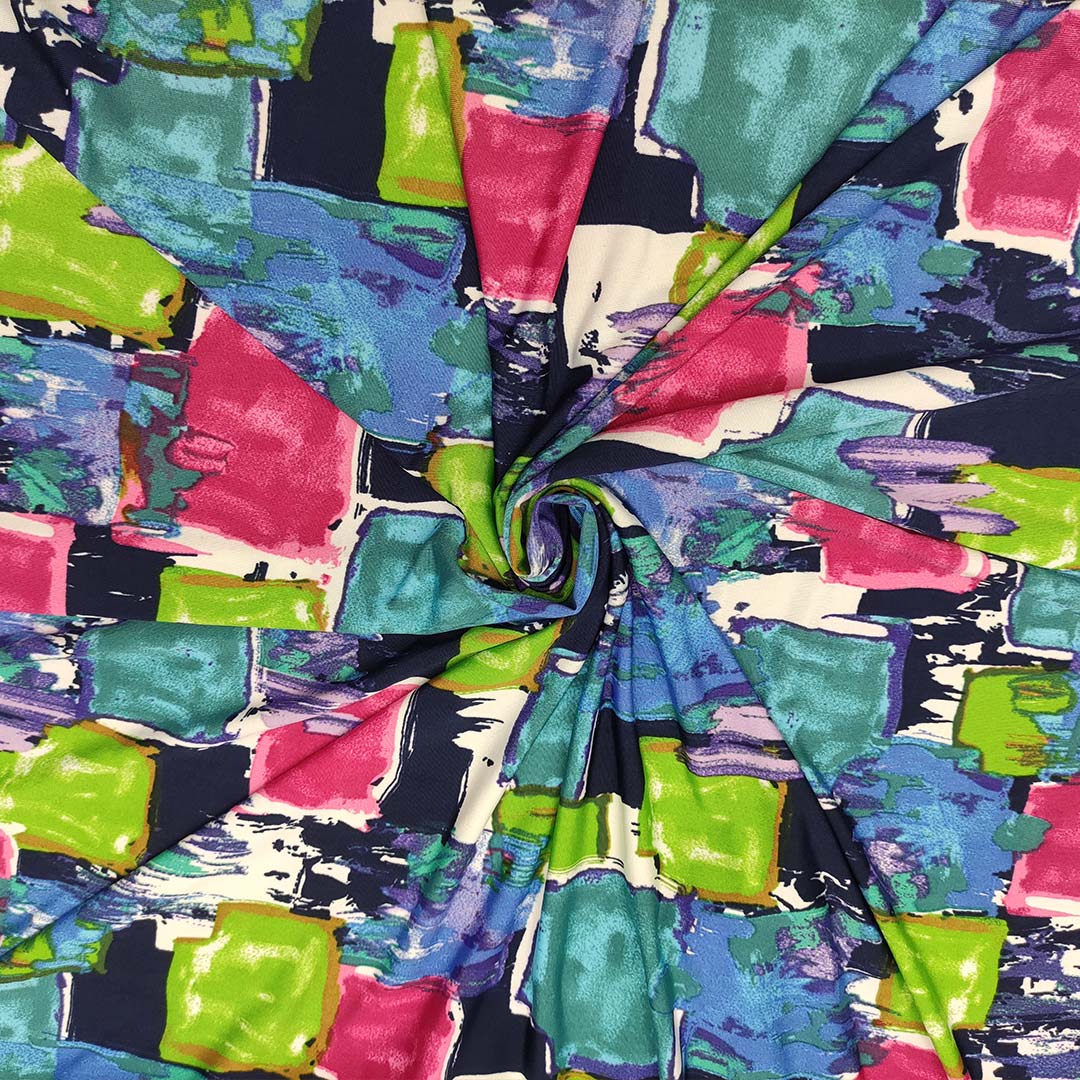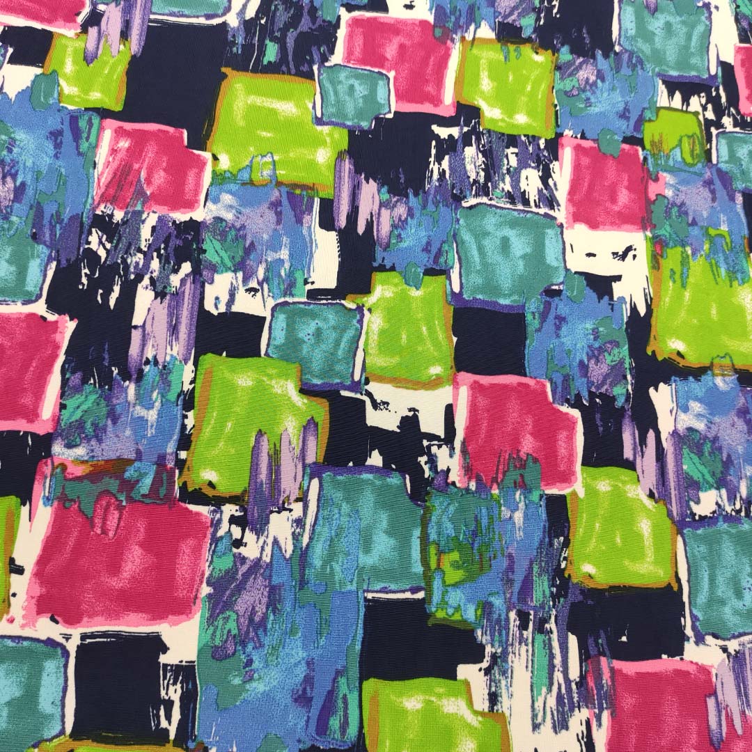 Tessuto Jersey a fantasia motivo astratto fucsia – blu – viola – verde