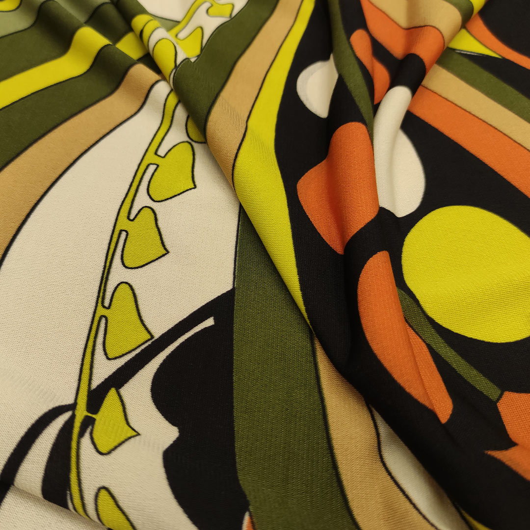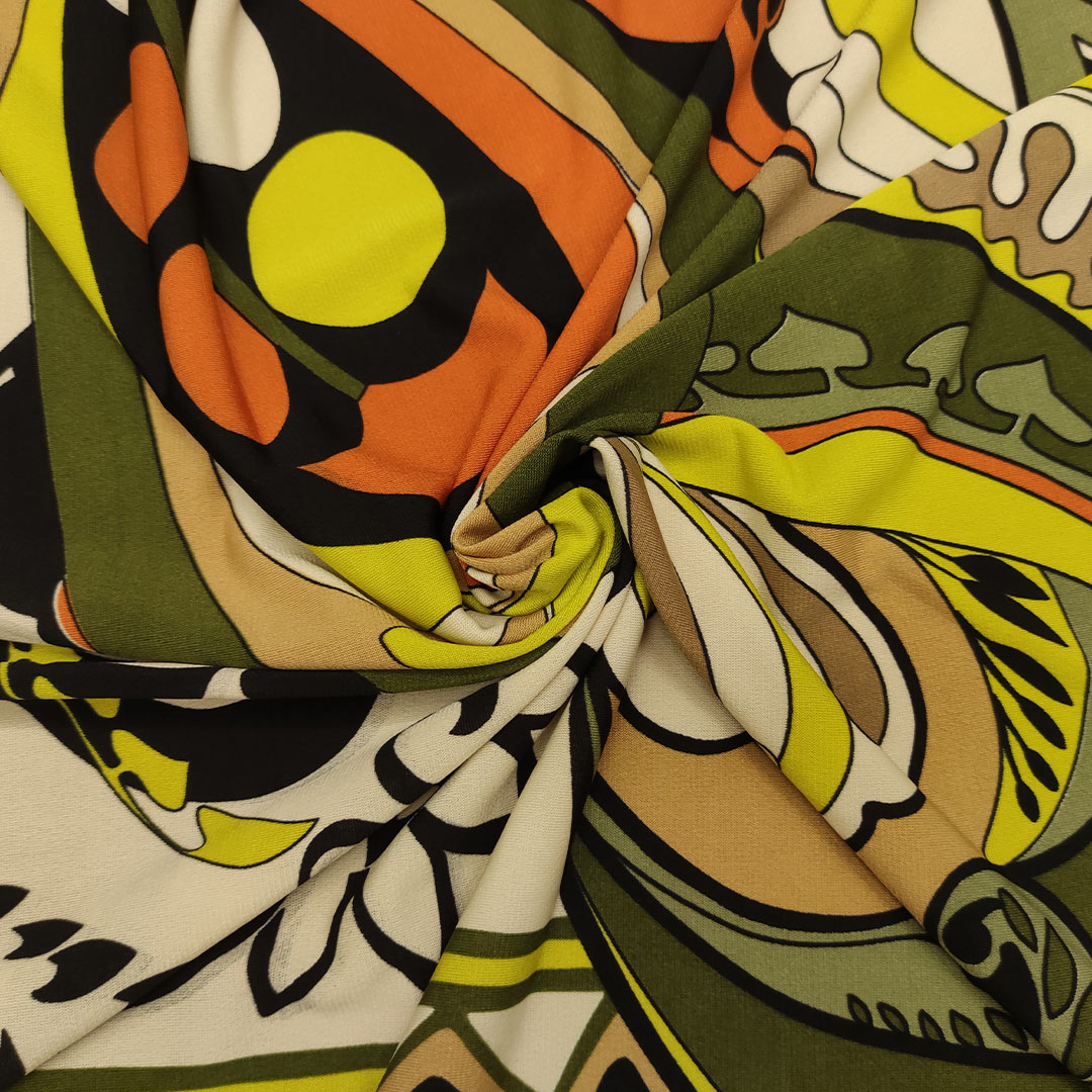 Tessuto Jersey a fantasia motivo astratto lime – nero – verde militare – beige